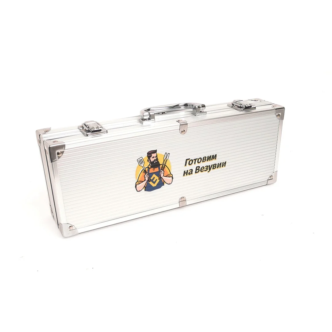Все аксессуары уложены в компактный чемоданчик из алюминиевого сплава. Приборы фиксируются резиновыми лентами и застёжками-липучками. Чемодан закрывается на стальные замки-петли и оснащён удобной ручкой для переноски.