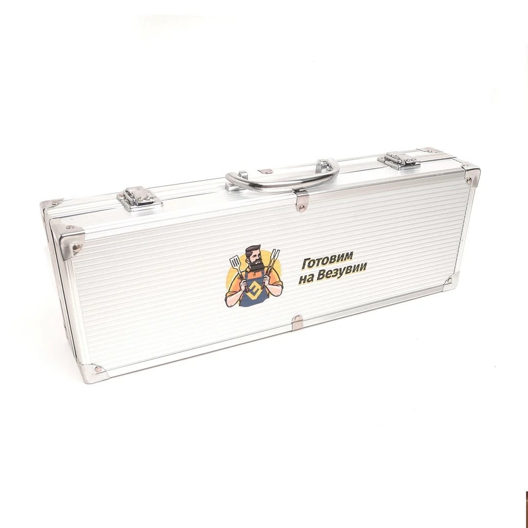 Все аксессуары уложены в компактный чемоданчик из алюминиевого сплава. Приборы фиксируются резиновыми лентами и застёжками-липучками. Чемодан закрывается на стальные замки-петли и оснащён удобной ручкой для переноски.