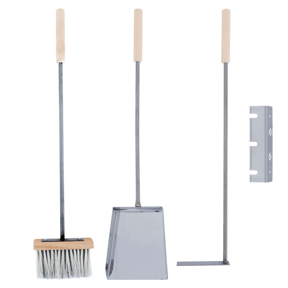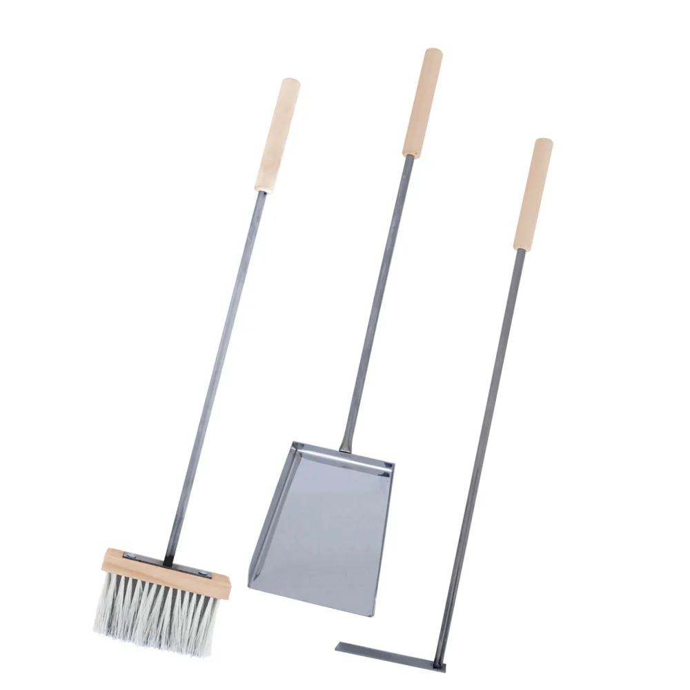 Набор предназначен для ухода за очагом, как во время горения, так и для чистки топки после него. Набор состоит из совка, кочерги, щетки.