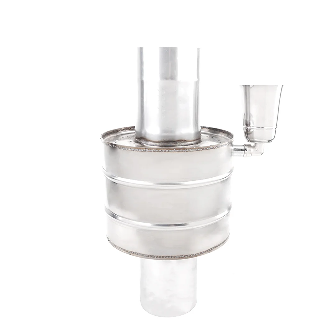 Парогенератор на трубе устанавливается на стартовый участок дымохода, выполнен целиком из нержавеющей стали марки AISI 439.