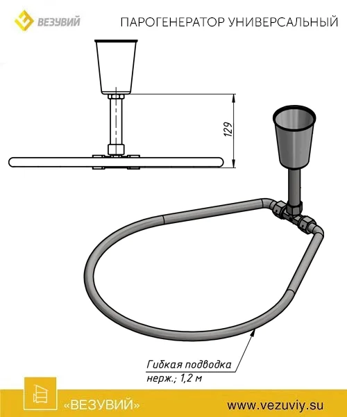 Трубка парогенератора сделана в виде гибкого кольца, чтобы количество воды, подаваемой в разные стороны каменки, было одинаковым и камни слева и справа от парогенератора имели одинаковую температуру.