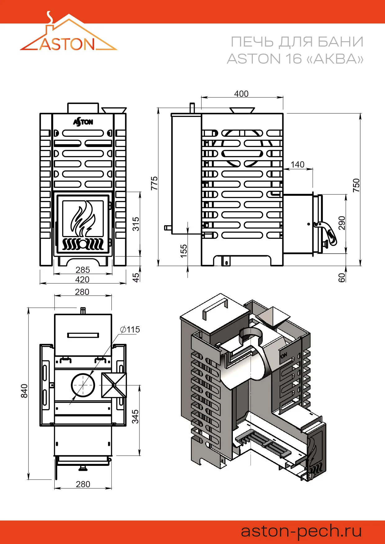 ASTON — бренд банных печей для бюджетных парных и бань-бочек. Несмотря на доступную цену, их конструкция очень интересна: