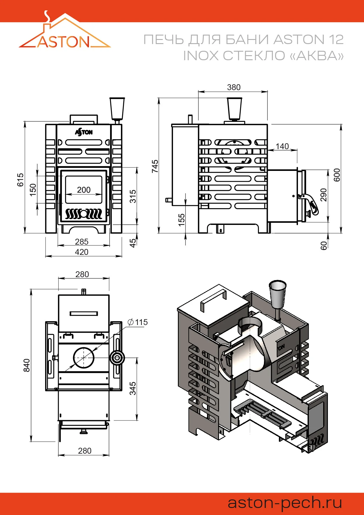 - Печь ASTON из нержавеющий стали марки AISI 430 устойчива к окислению и прогару.