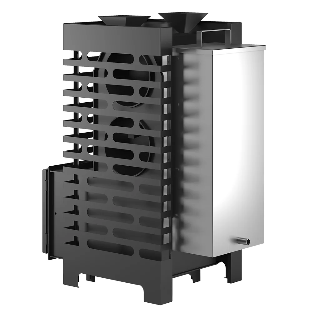 - Стальной кожух-конвектор значительно ускоряет нагревание воздуха в парилке за счет образуемого им мощного воздушного потока.