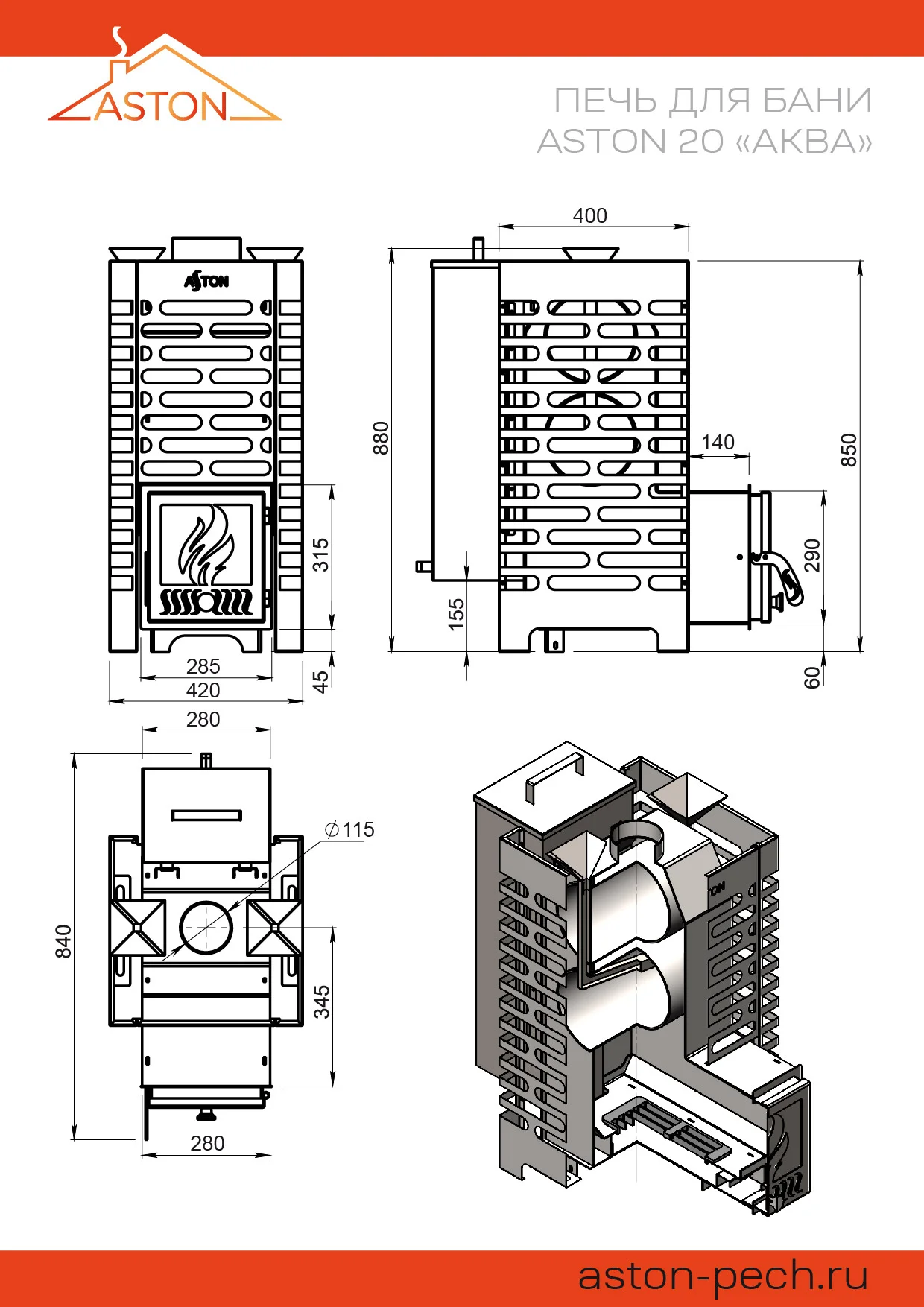 ASTON — бренд банных печей для бюджетных парных и бань-бочек. Несмотря на доступную цену, их конструкция очень интересна: