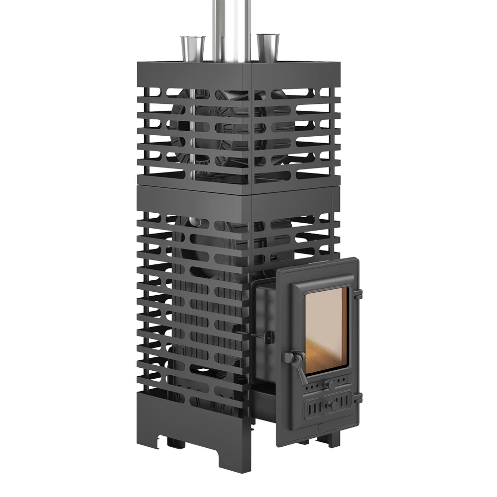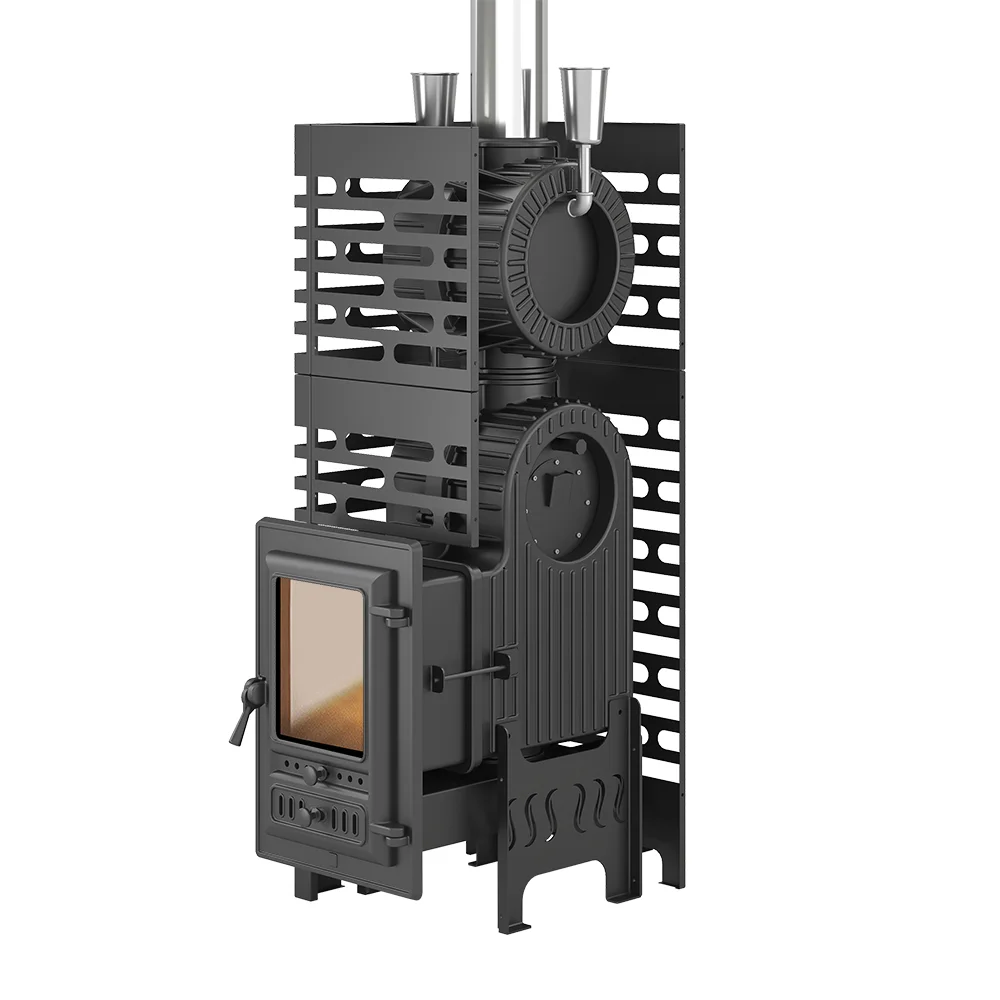 Для закладки камня предназначена цилиндрическая каменка из нержавеющей стали AISI 430, размещённая на пути пламени и горящих дымовых газов. Каменка рассчитана на 15-20 кг камней для бани, которые за счёт обтекания пламенем нагреваются до температур свыше 450°C.