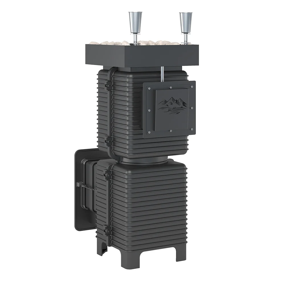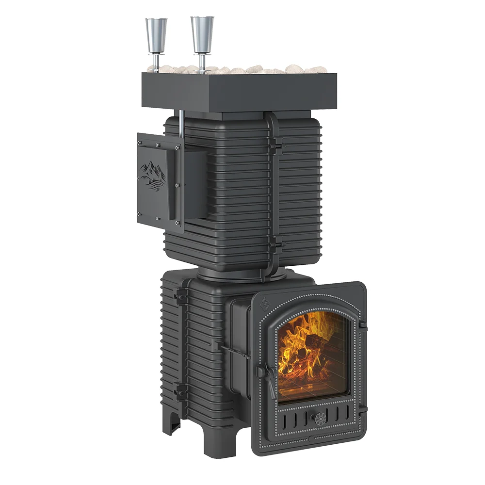 Поворотная чугунная банная печь EVEREST Лёгкий Пар ПРОФИ предназначена для обогрева парных помещений объёмом до 44 кубических метров и получения пара при эксплуатации в частных и коммерческих банях.