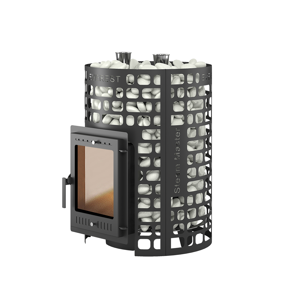 Внешний тепловой контур образован открытой каменкой в виде цилиндрической сетки, вмещающей в себя 140 килограммов камней. Сетка сделана из стали, в новом минималистичном дизайне EVEREST.