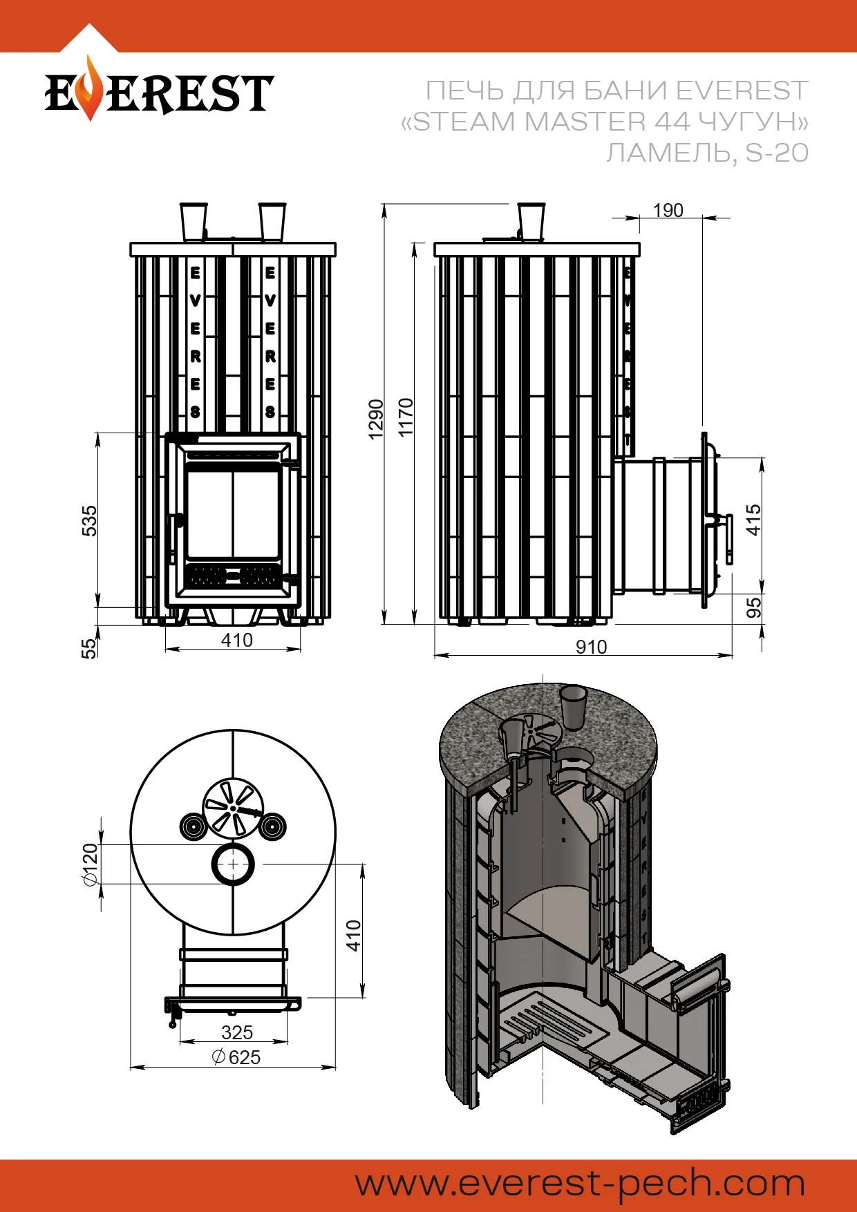 Печь для бани Эверест "Steam Master 30 ЧУГУН" Ламель Рваный камень, S-20 предназначена для нагрева помещений и получения пара в парных объёмом до 30 кубических метров. Печь изготовлена из качественного чугуна и отличается интересной конструкцией.