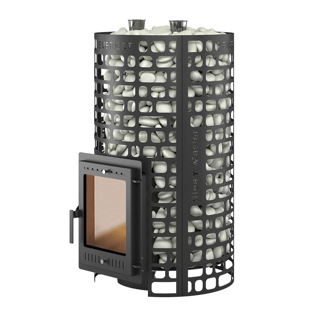 Внешний тепловой контур образован открытой каменкой в виде цилиндрической сетки, вмещающей в себя 210 килограммов камней. Сетка сделана из стали, в новом минималистичном дизайне EVEREST.