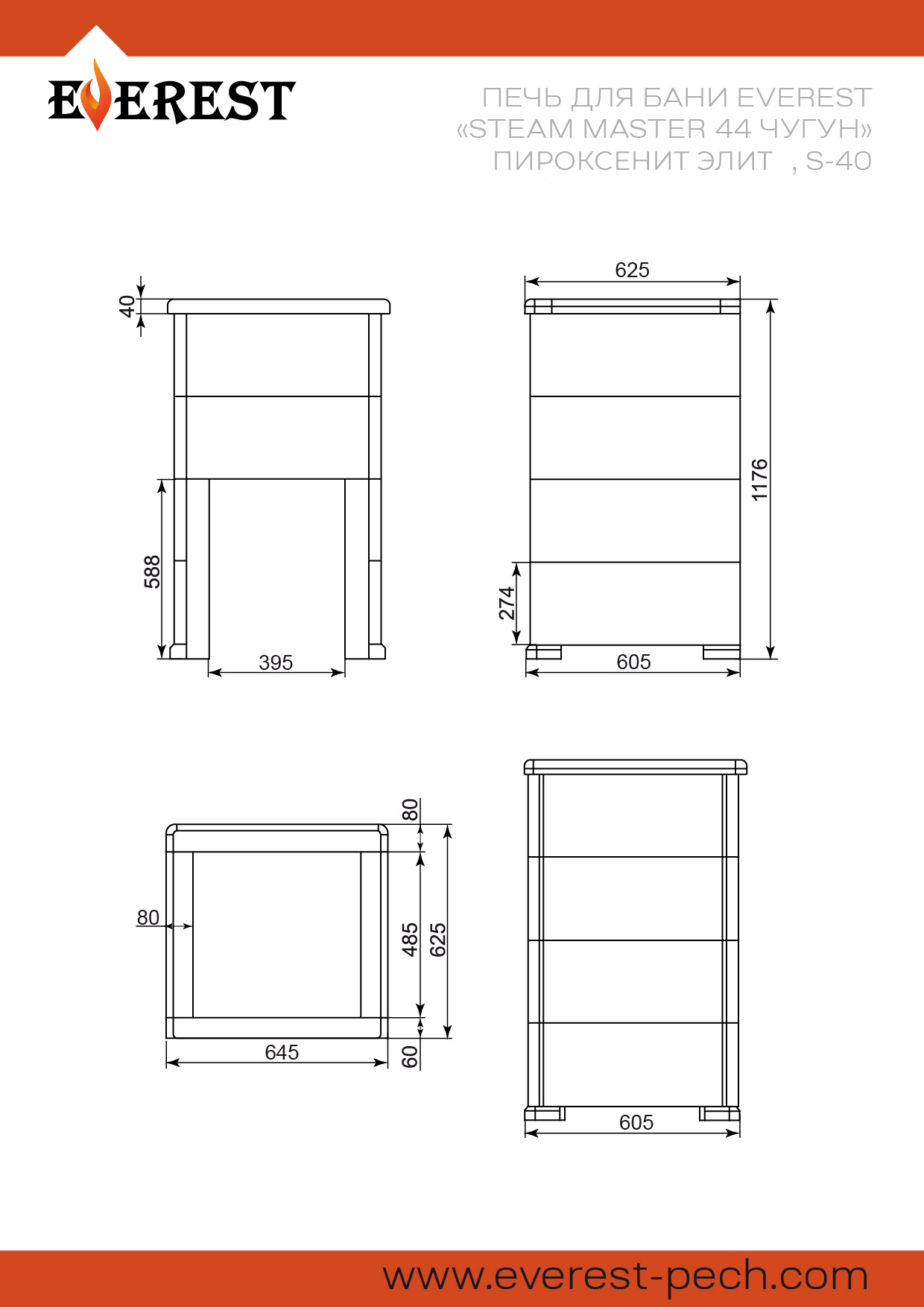 Банная печь Эверест "Steam Master" 44 ЧУГУН" Пироксенит Элит, S-40 предназначена для нагрева помещений и получения пара в парных объёмом до 44 м³. Печь изготовлена из качественного чугуна и отличается интересной конструкцией.