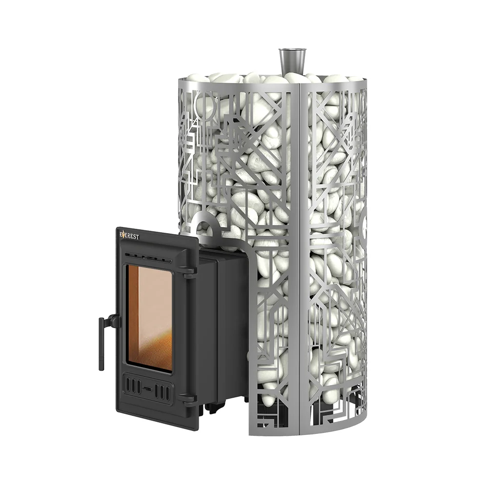 Внешний контур в виде сетки из нержавеющей стали толщиной 1 миллиметр вмещает в себя до 150 кг камней для бани. Сетка сделана в минималистичном дизайне Эверест.