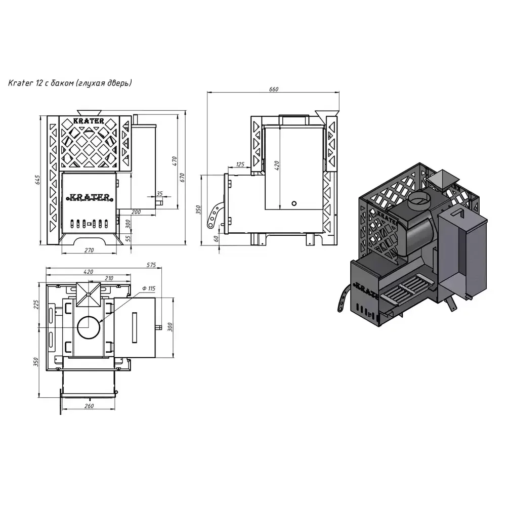 Выбирая печь для бани "Кратер 12" с баком, вы получаете надежный и качественный продукт, который обеспечит вам комфортный и приятный отдых в бане.