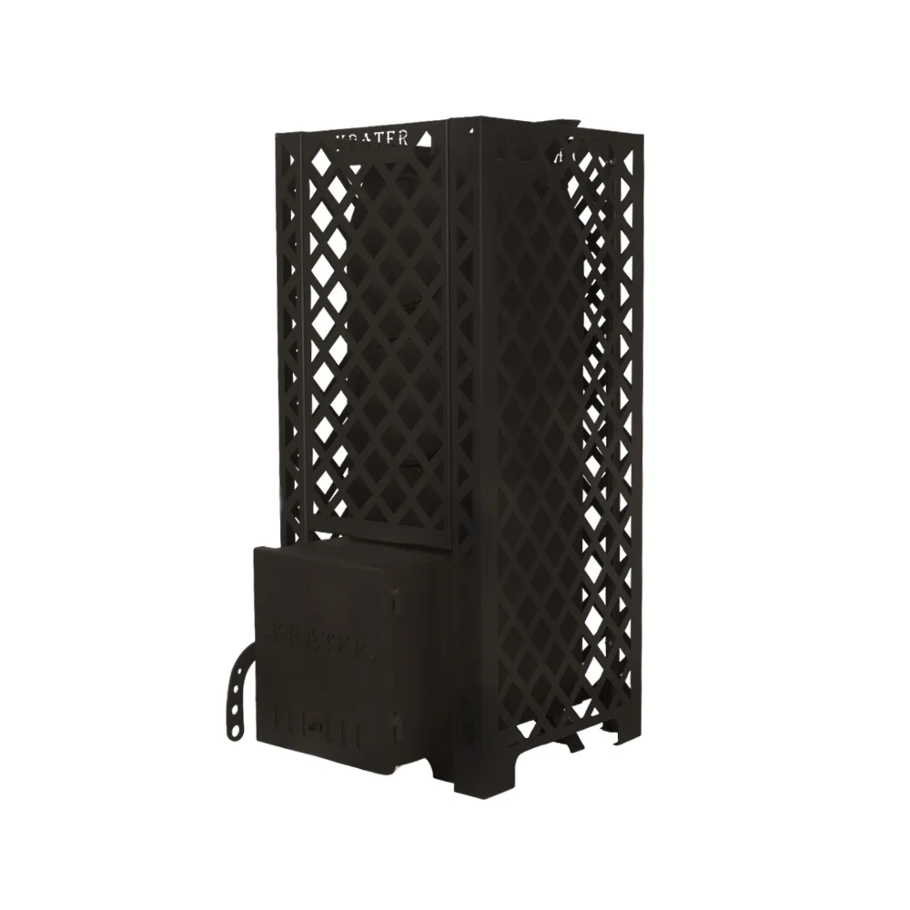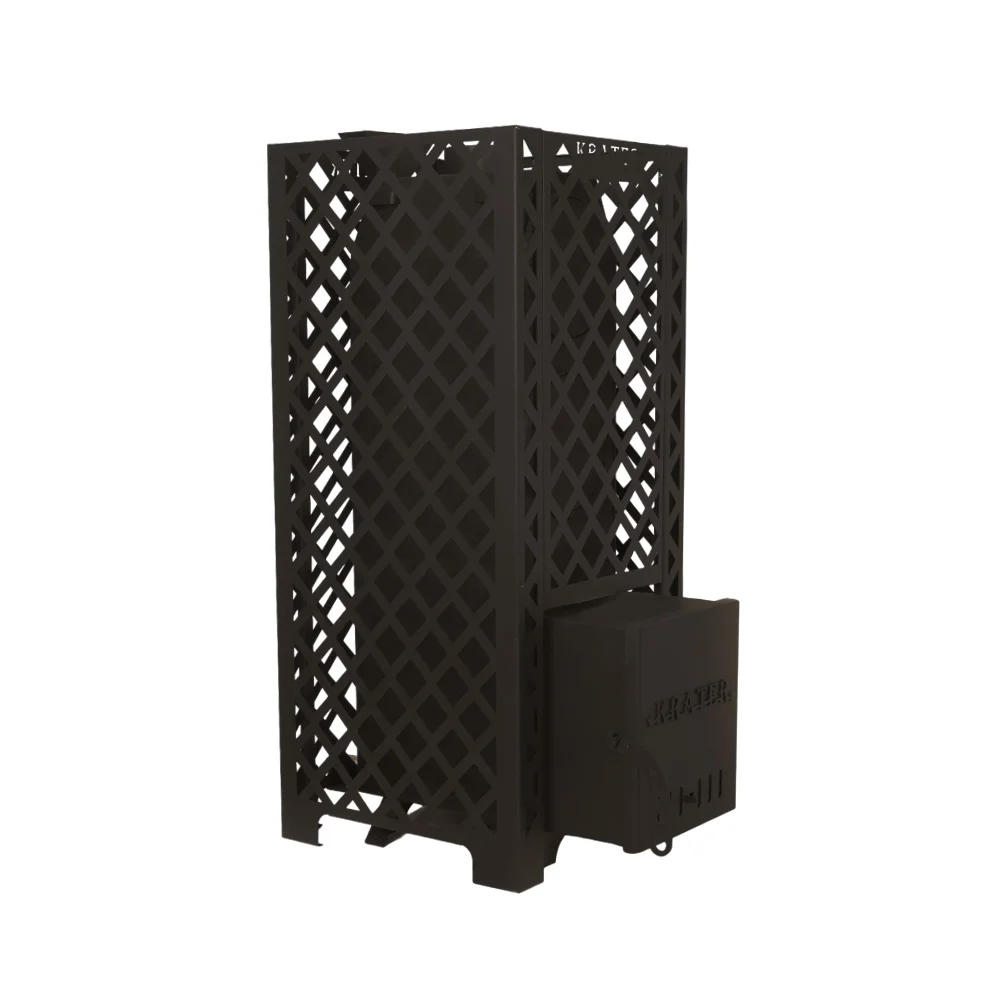 Закрытая каменка печи "Кратер" обеспечивает равномерное прогревание камней, что способствует получению мелкодисперсного пара и стабильному поддержанию температуры в парилке.
