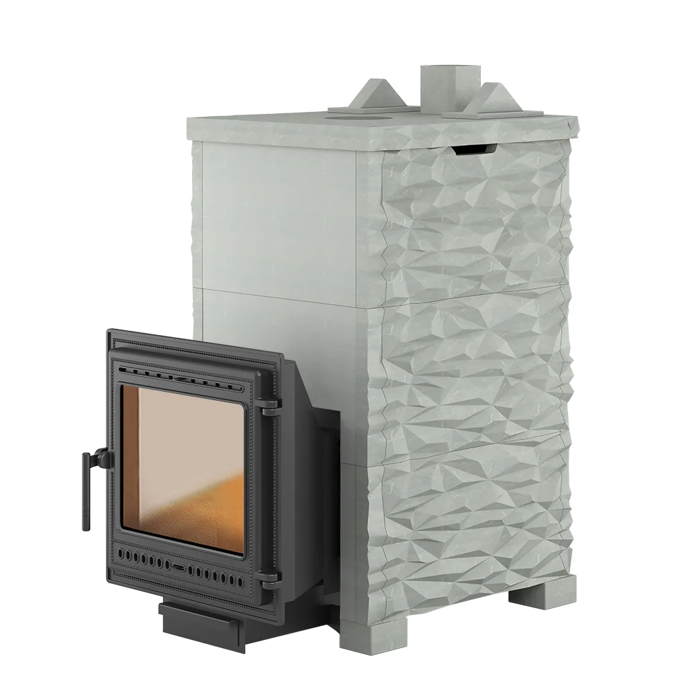 Комплект с чугунной банной печью «Легенда Русский пар 24 (505) Next» в облицовке из натурального камня.