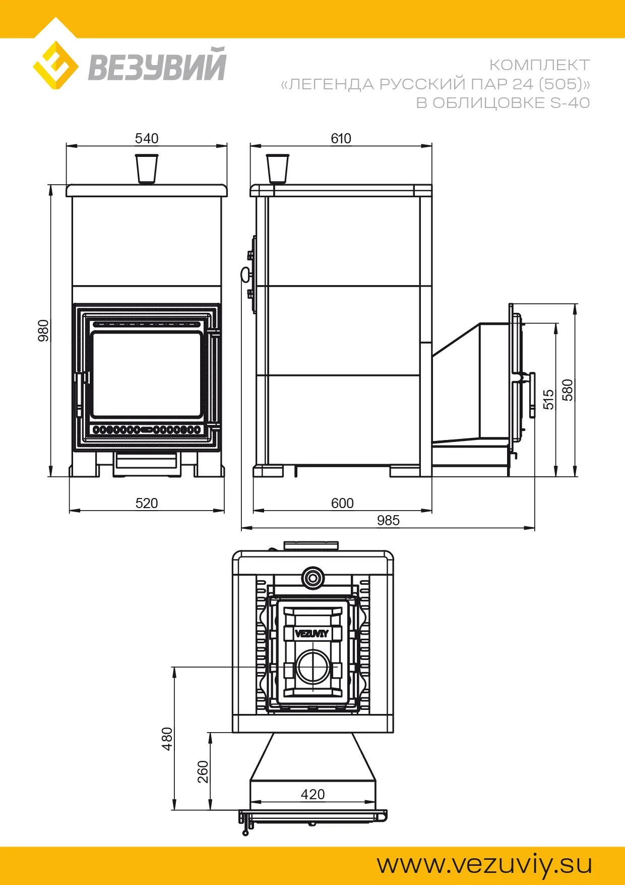 -ВЕЗУВИЙ Легенда Русский пар 24 (505) под облицовку.