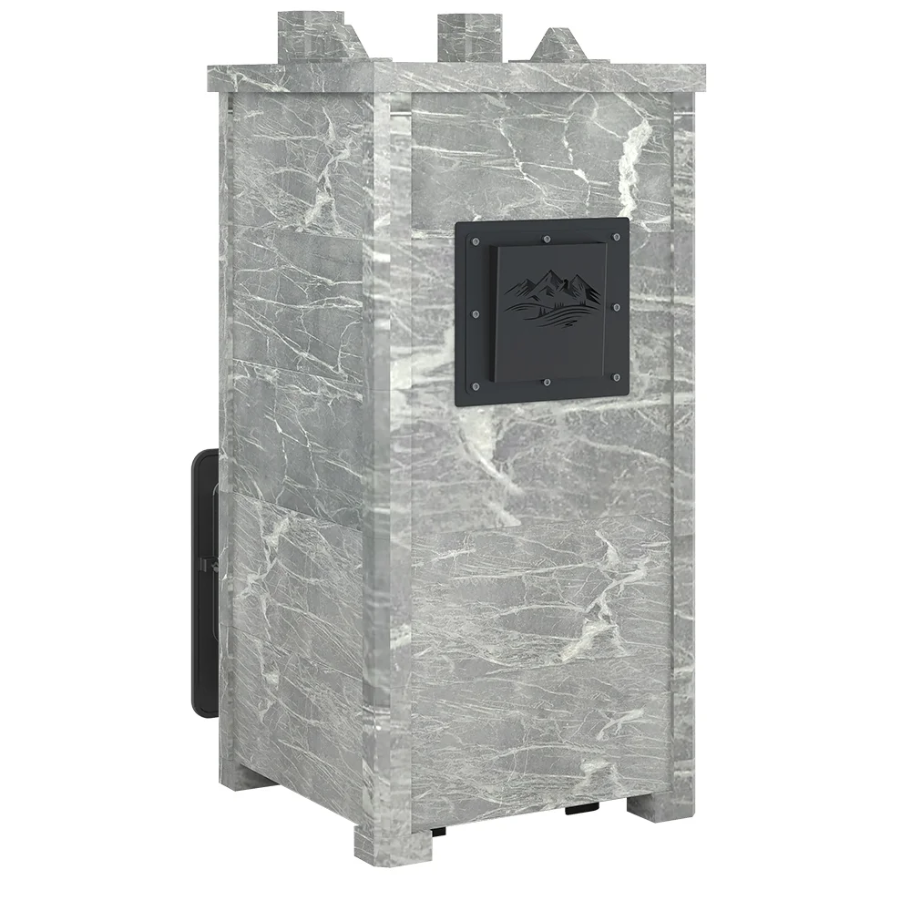 Закрытая каменка из чугуна толщиной 10 миллиметров сверху и снизу имеет закруглённую конструкцию. Каменка находится на месте пламегасителя. Огонь при горении дров охватывает каменку с четырёх сторон, что ускоряет нагрев заклада. Закрытая каменка рассчитана на размещение 60 килограммов камня для бани, создаёт массивный тепловой заряд. Каменка и внешний корпус изготовлены из чугуна, крепятся друг к другу по типу «паз-гребень» с использованием термостойкого герметика.