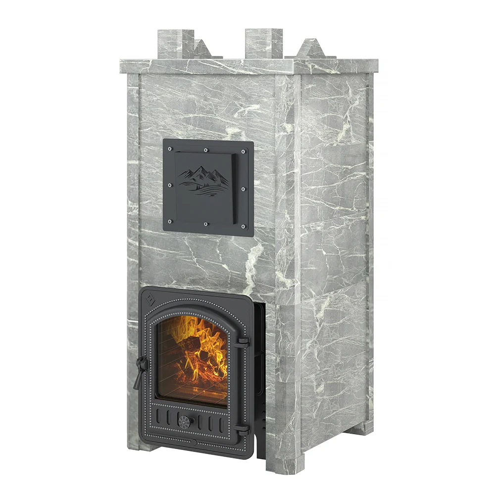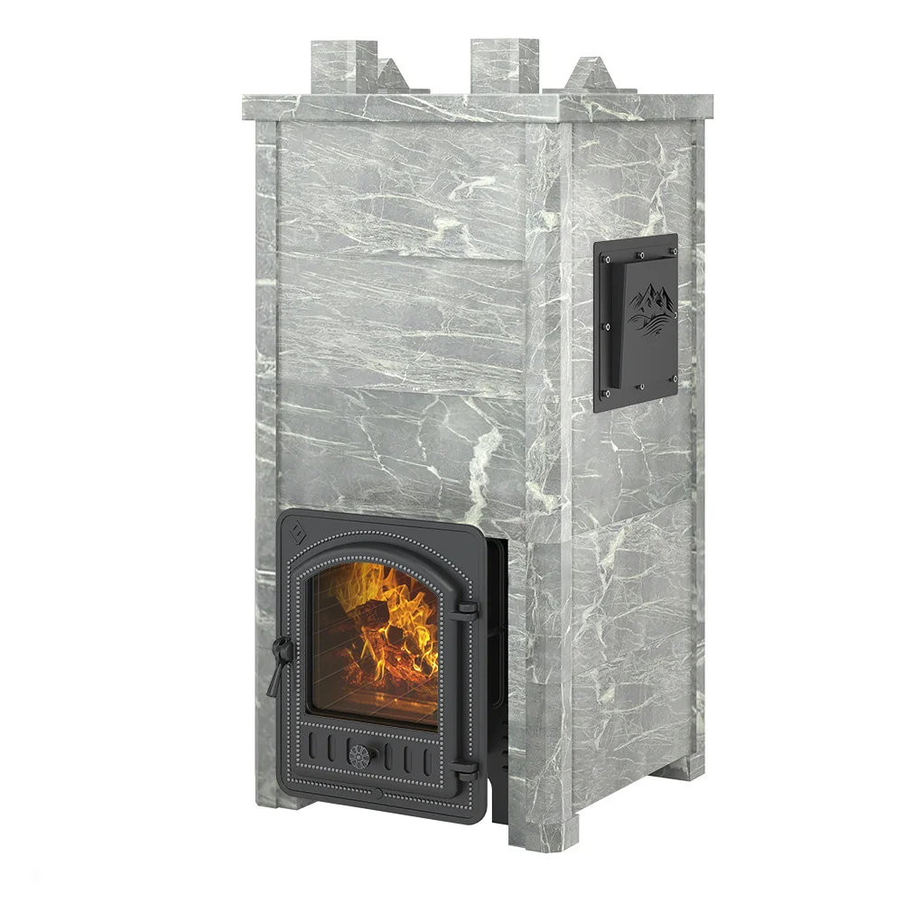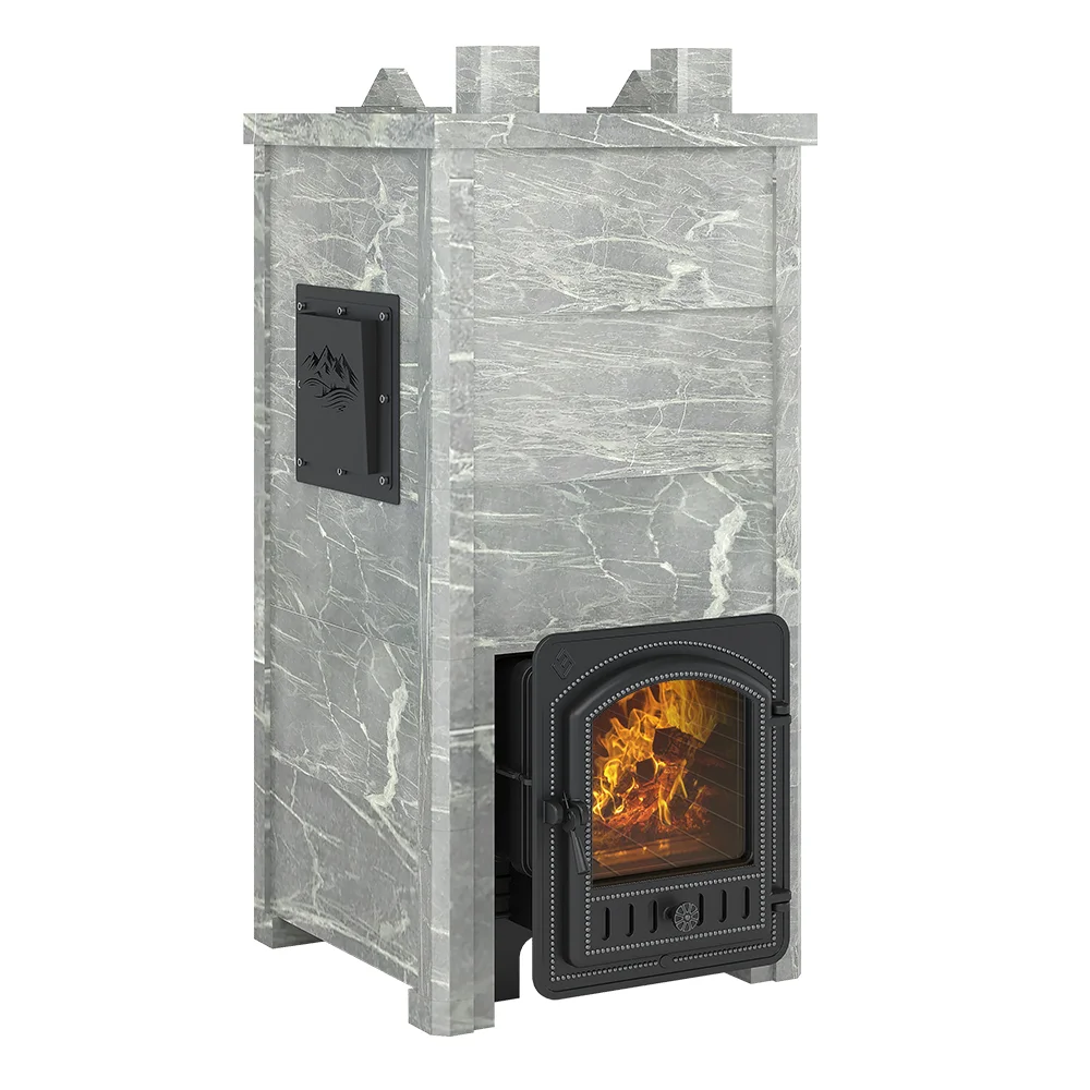Закрытая каменка из Нержавеющей 4мм стали (AISI 430) сверху и снизу имеет закруглённую конструкцию. Каменка находится на месте пламегасителя. Огонь при горении дров охватывает каменку с четырёх сторон, что ускоряет нагрев заклада. Закрытая каменка рассчитана на размещение 60 килограммов камня для бани, создаёт массивный тепловой заряд. Каменка и внешний корпус изготовлены из чугуна, крепятся друг к другу по типу «паз-гребень» с использованием термостойкого герметика.