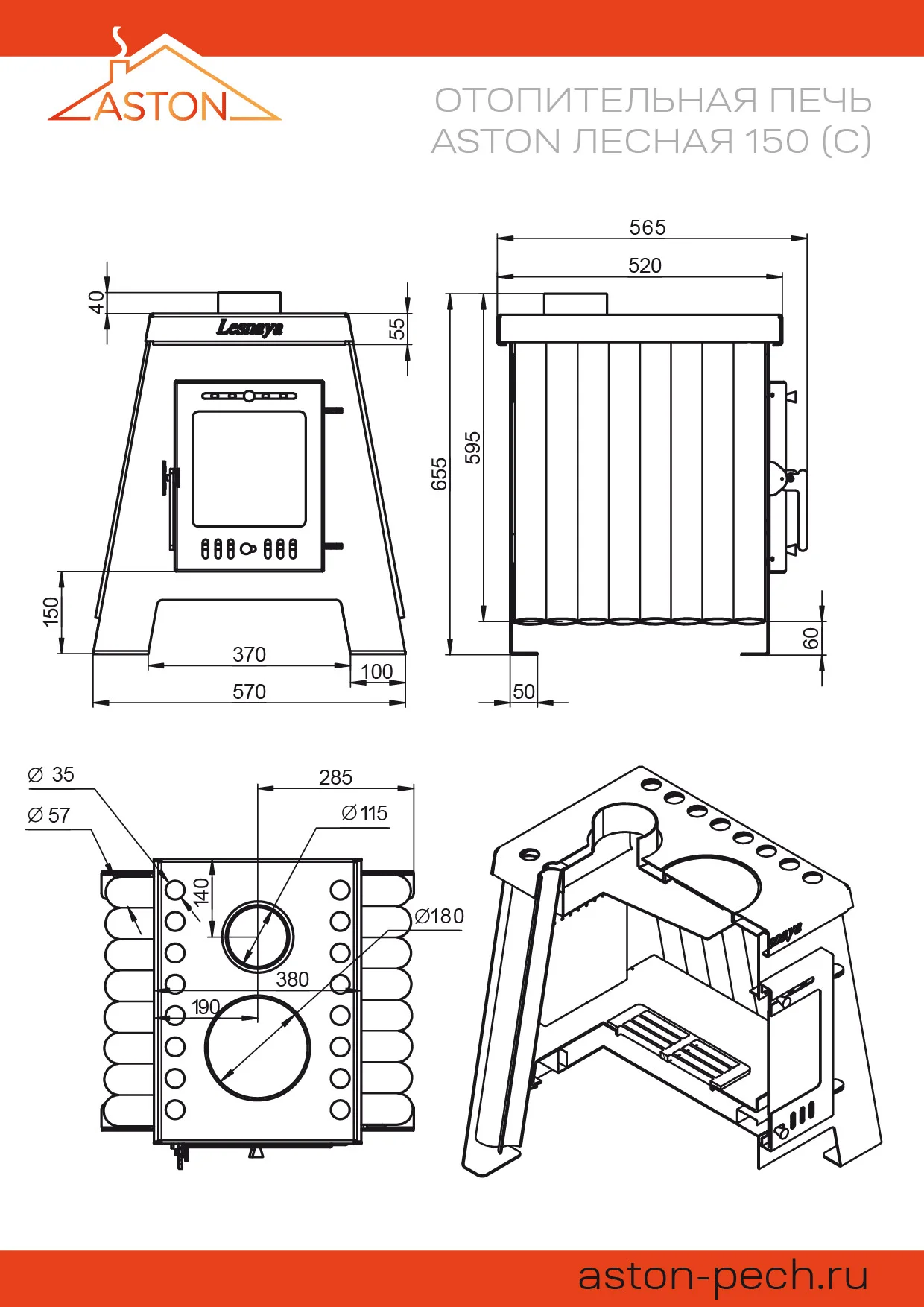 Астон Лесная - отопительная печь конвекционного типа, изготовленная из особо прочной котловой стали. Печь предназначена для обогрева помещений объёмом до 150 кубических метров.