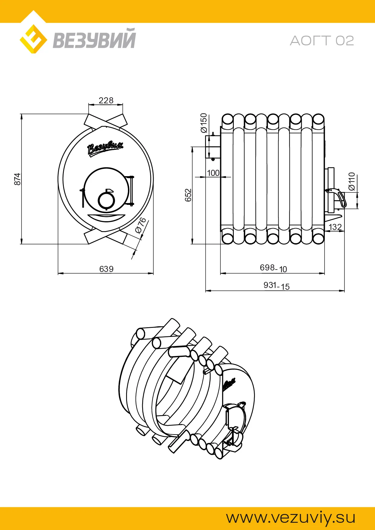 Печь отопительная ВЕЗУВИЙ АОГТ 02 предназначена для обогрева бытовых нежилых и промышленных помещений. Печь рассчитана на обогрев помещений объёмом до 400 кубических метров.