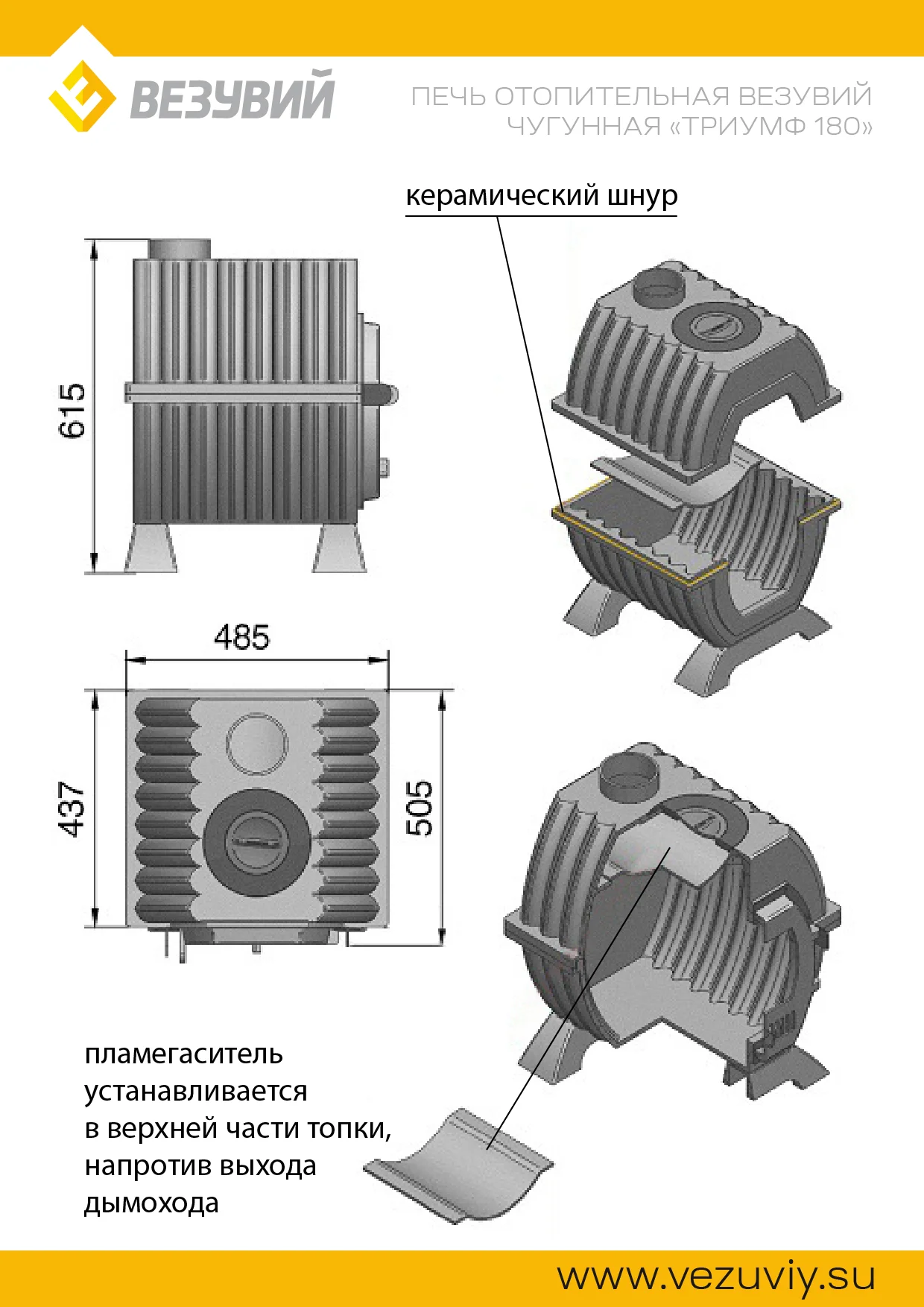 - Топка состоит из двух чугунных элементов толщиной не менее 12 мм.