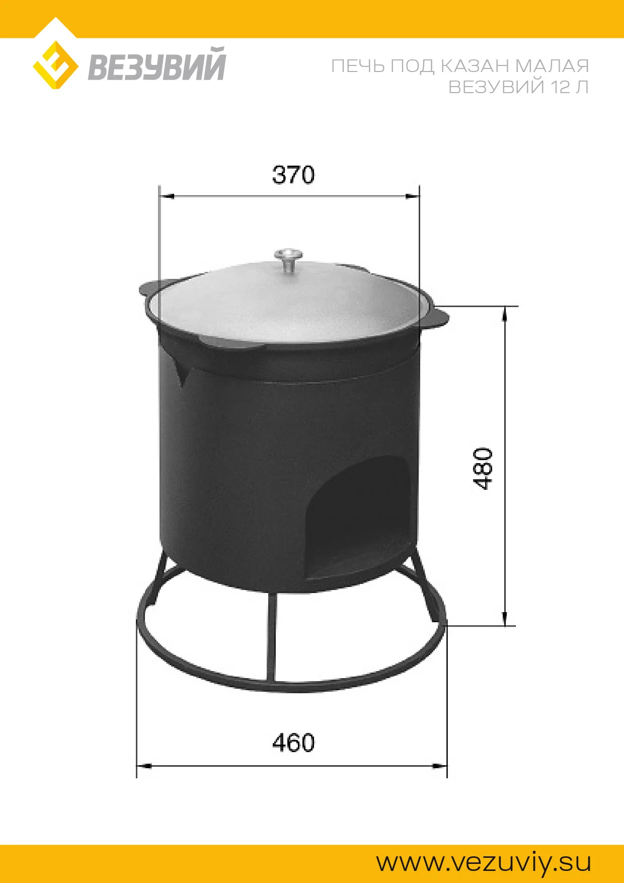 Малая печь под казан Везувий 12л предназначена для приготовления блюд в казане на открытом огне. Размеры печи рассчитаны на использование казанов Везувий объёмом 12 литров.