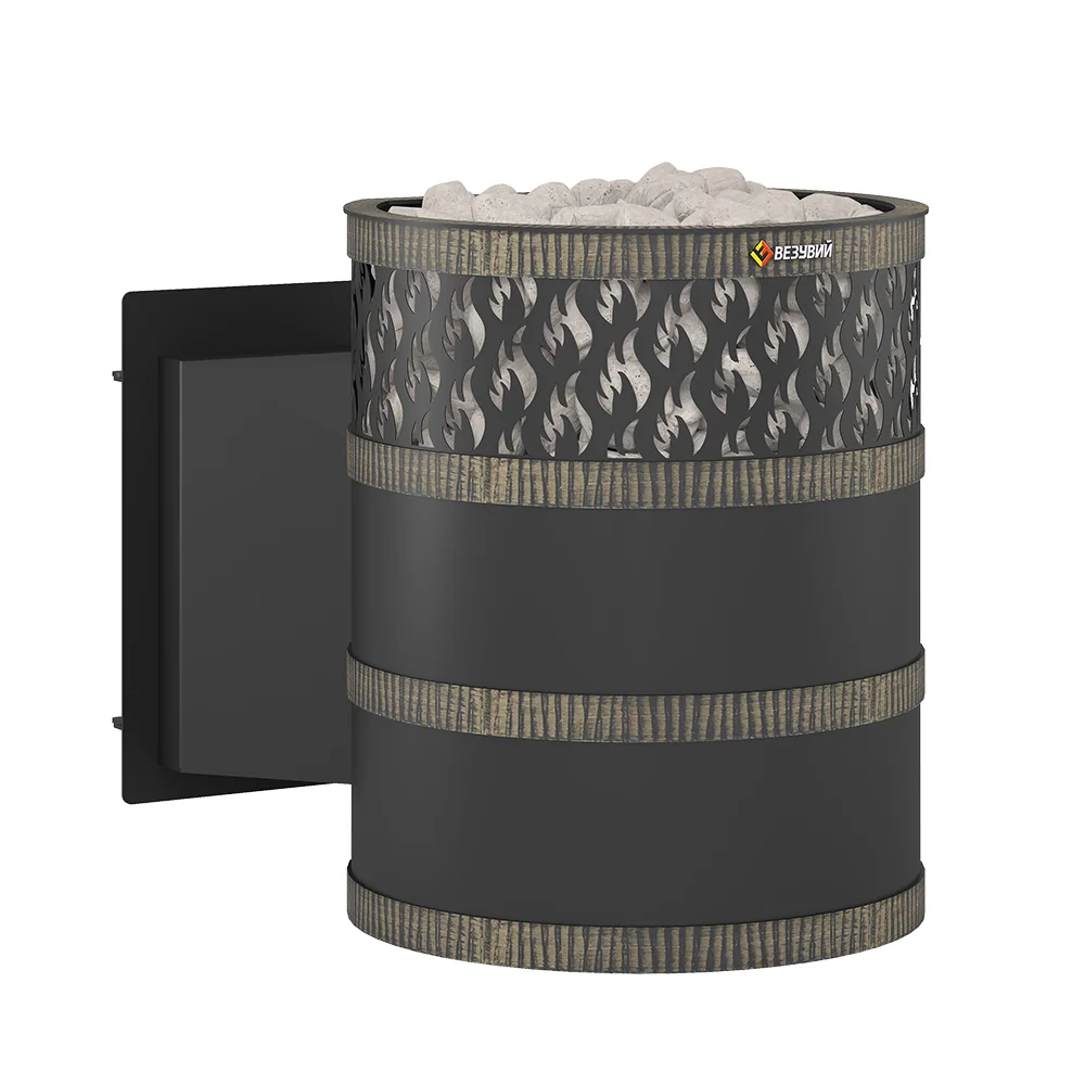 Кожух из стального листа и кованых стальных колец предназначен для обеспечения конвекции устройства открытой каменки и дополнительно защищает парящихся от жёсткого инфракрасного излучения. В верхней части кожуха для усиления движения воздуха сделаны прорезные отверстия в виде языков пламени.