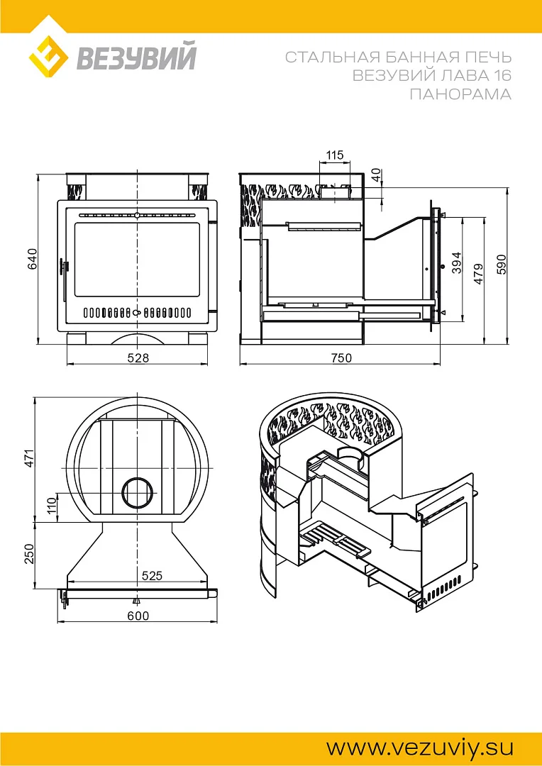 Стальная банная печь серии Лава усовершенствованной конструкции работает на дровах и предназначена для нагрева пространства парной и получения пара. Печь ВЕЗУВИЙ Лава 16 Панорама 2022 рассчитана на объем парной 8-18 кубометров.