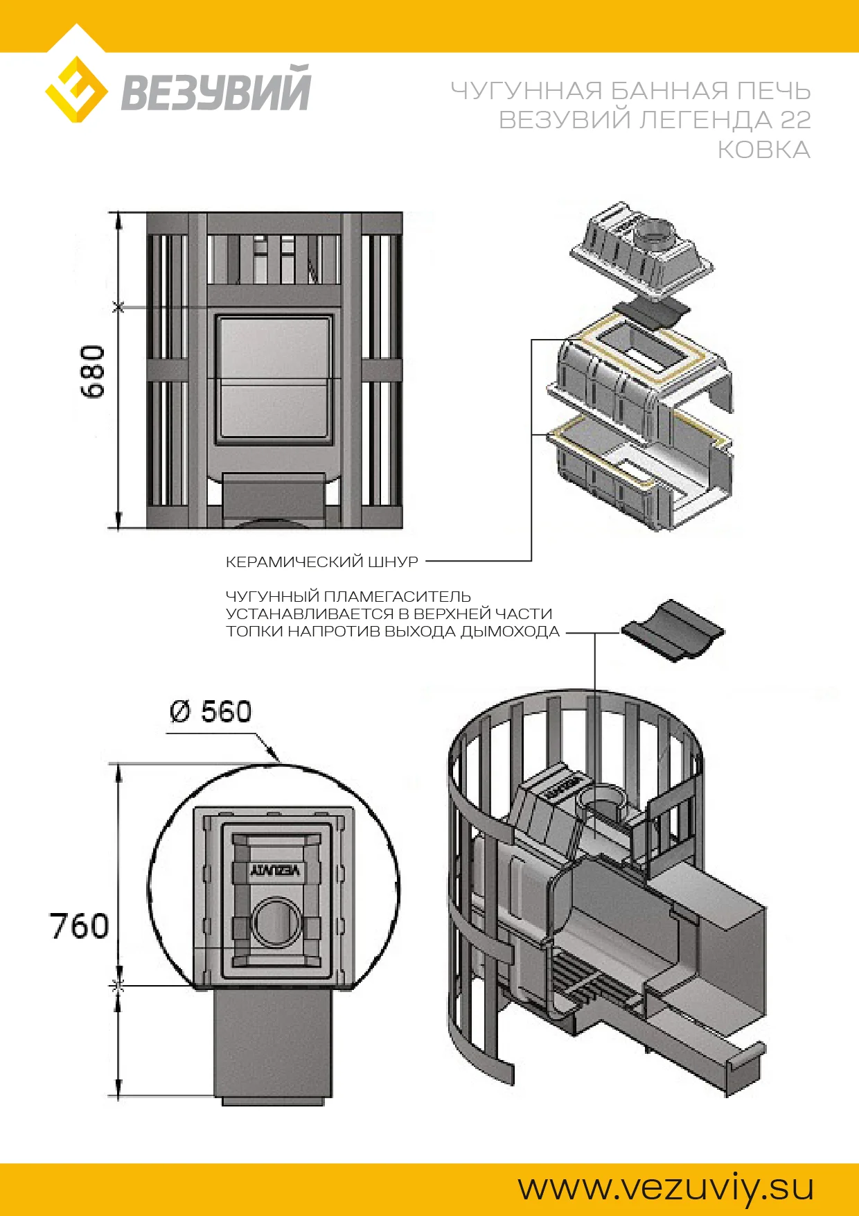 Банная чугунная печь Легенда Ковка 22 (271) укомплектована чугунной герметичной дверцей Везувий 271. Конвекционно-вентилируемый кожух "Ковка" изготовлен из металлической текстурированной полосы покрашенной термостойкой краской и покрытая патиной «Бронза».