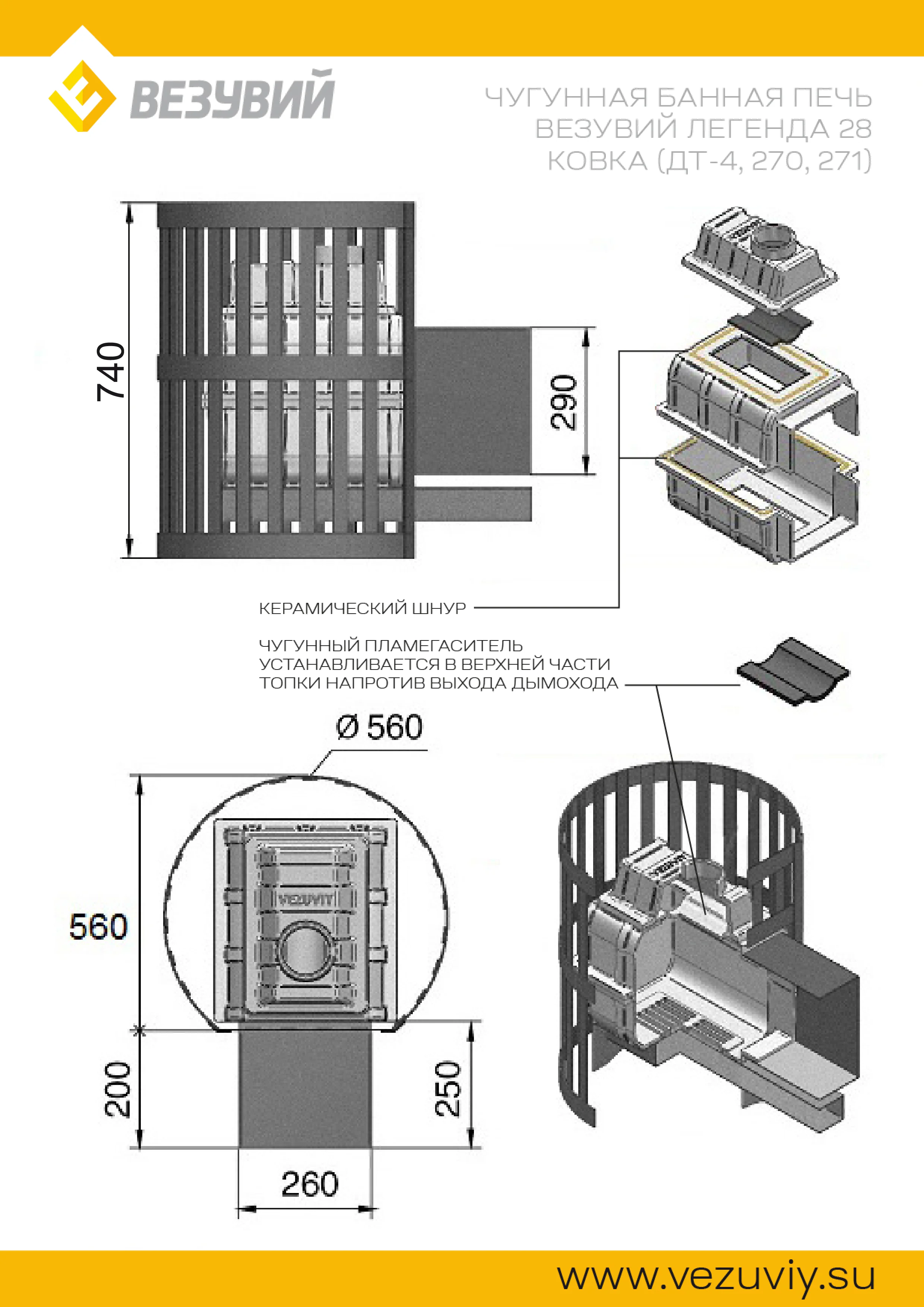 Преимущество печи в том, что топка печи состоит из 3-х элементов. На стыке между ними используется керамический шнур с рабочей температурой 1200 градусов. То есть топка печи абсолютно герметична! Для фиксации деталей между собой применяется болтовое соединение, что даёт 100% гарантию безопасности при эксплуатации.