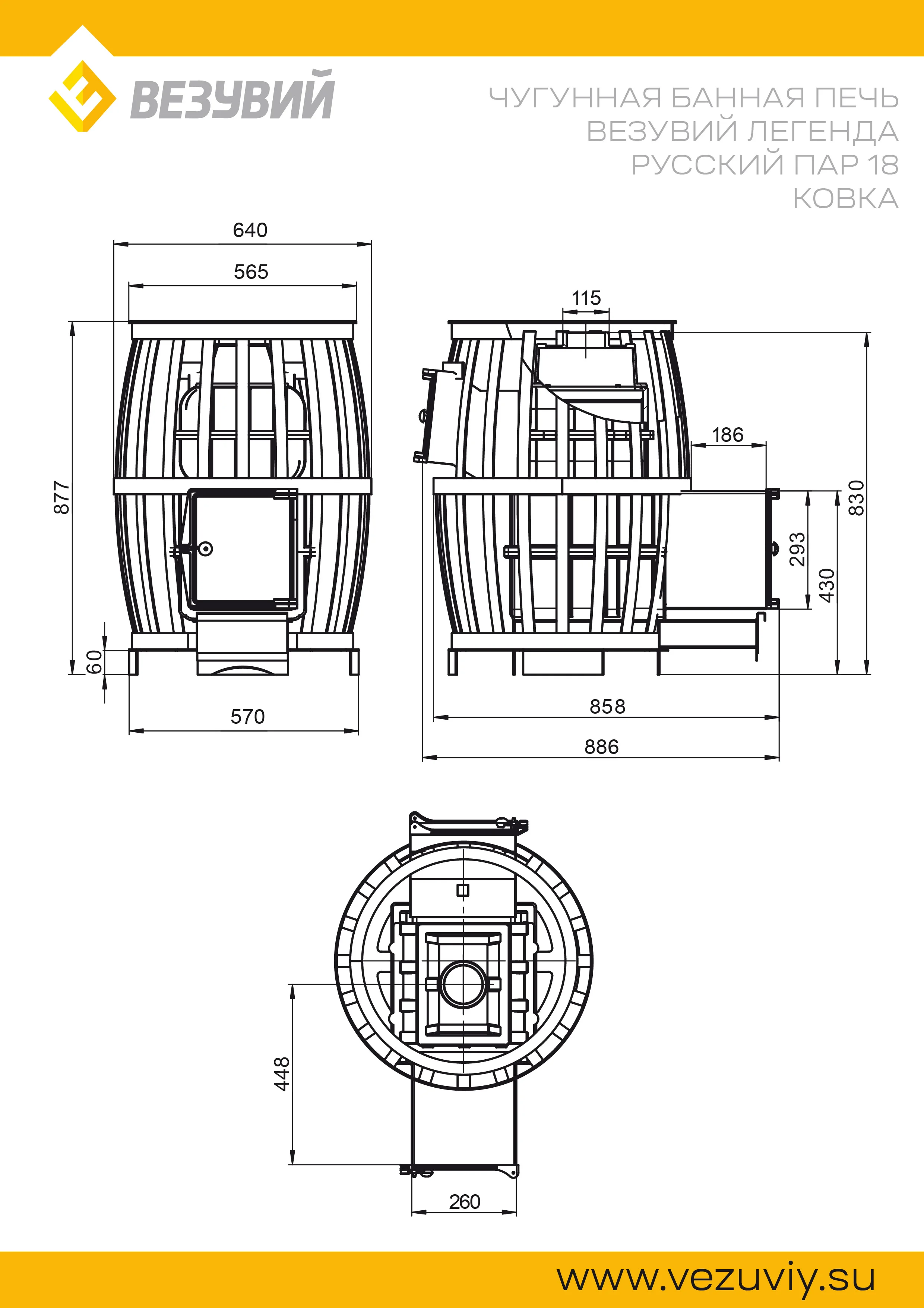 Печи для бани серии «Легенда Русский пар 18» рассчитаны на парные объёмом от 8 до 18 м3.