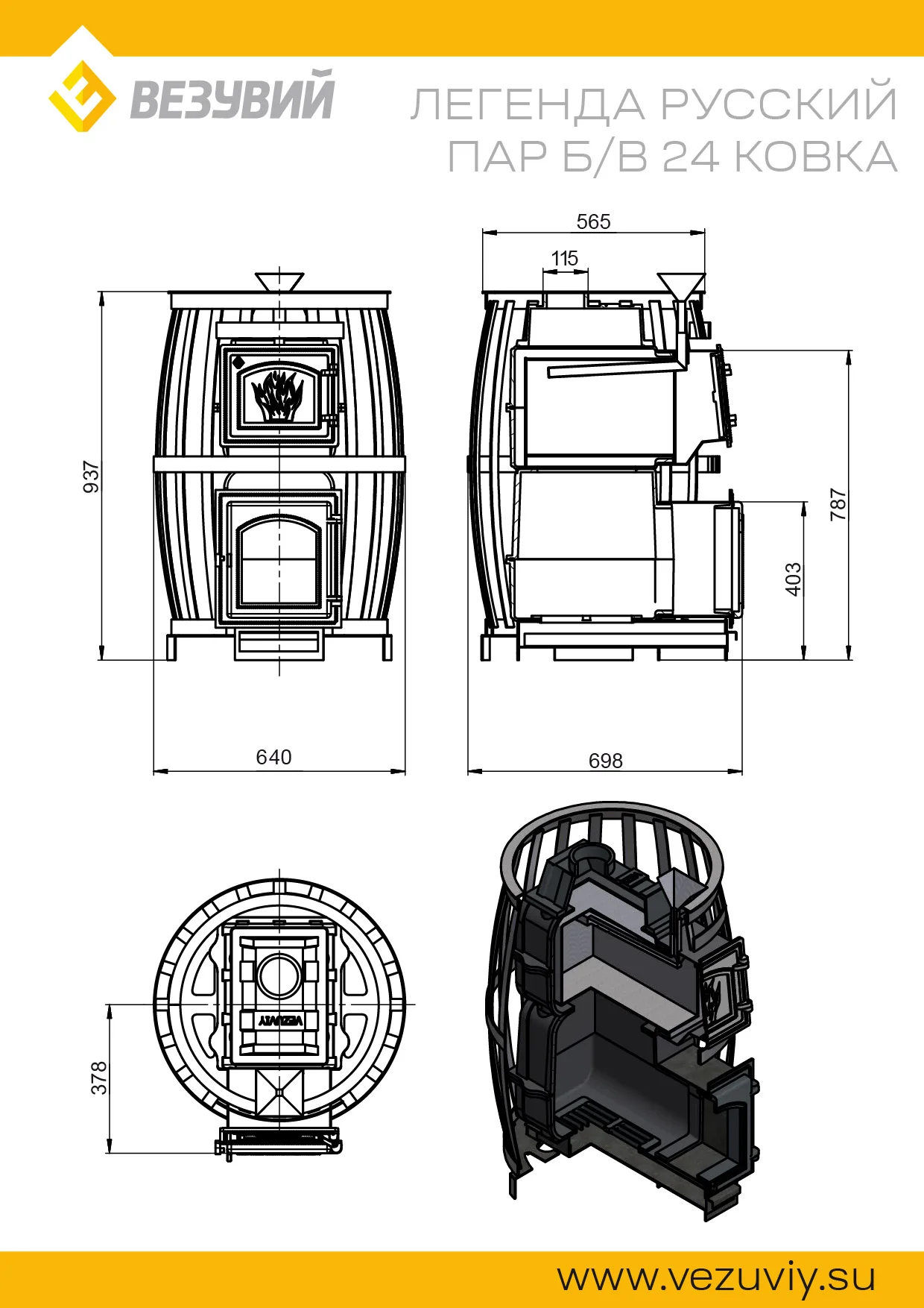 Печи для бани серии «Легенда Русский пар 24» рассчитаны на парные объёмом от 12 до 24 м3.