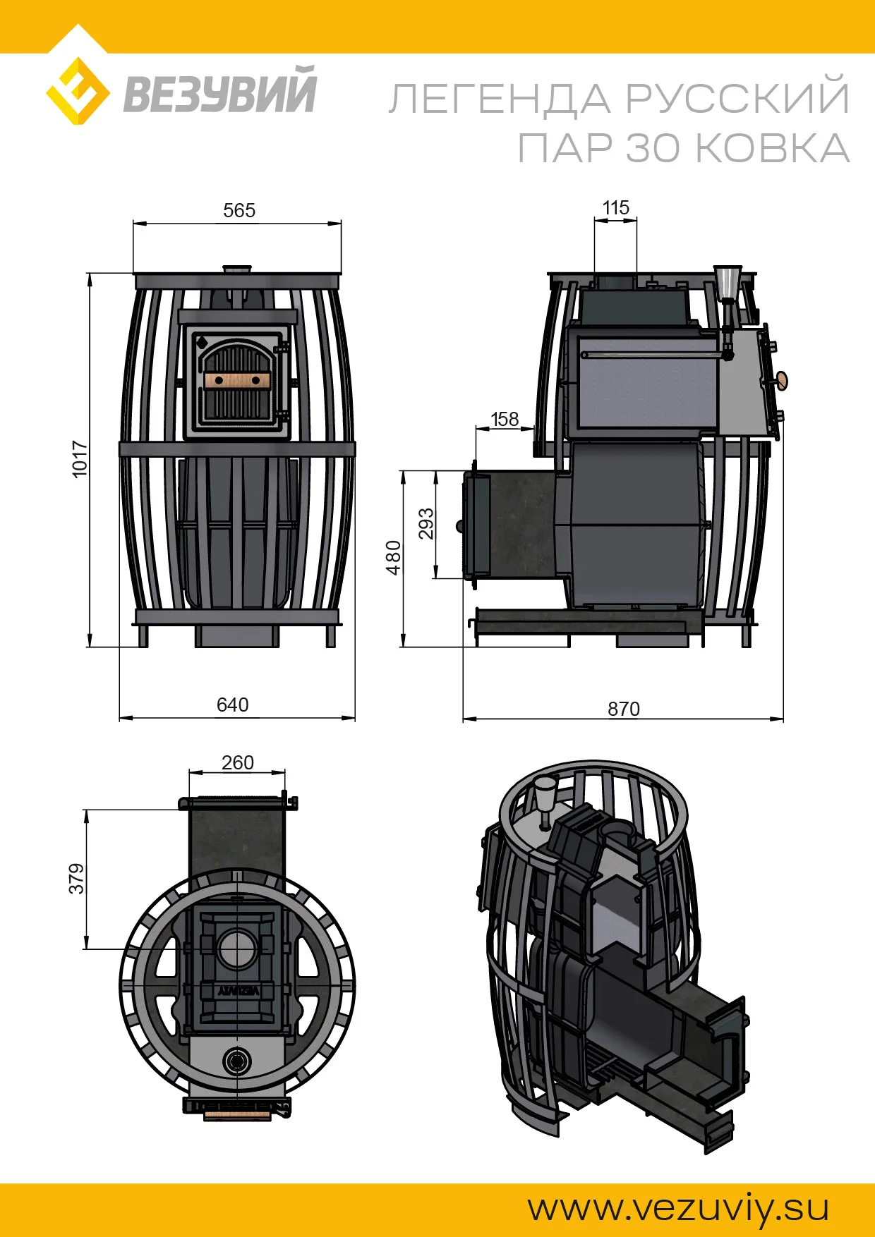 Печи для бани серии «Легенда Русский пар 30» рассчитаны на парные объёмом от 14 до 30 м3.
