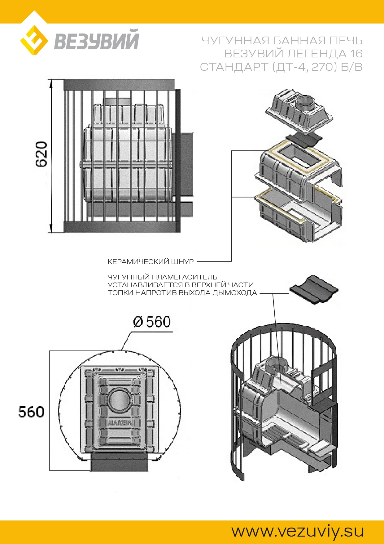 Банная чугунная печь Легенда Стандарт 16 (ДТ-4) укомплектована чугунной не герметичной дверцей Везувий ДТ-4. Конвекционно-вентилируемый кожух "Стандарт" изготовлен из металлического прутка диаметром 6мм покрашенной черной термостойкой краской.