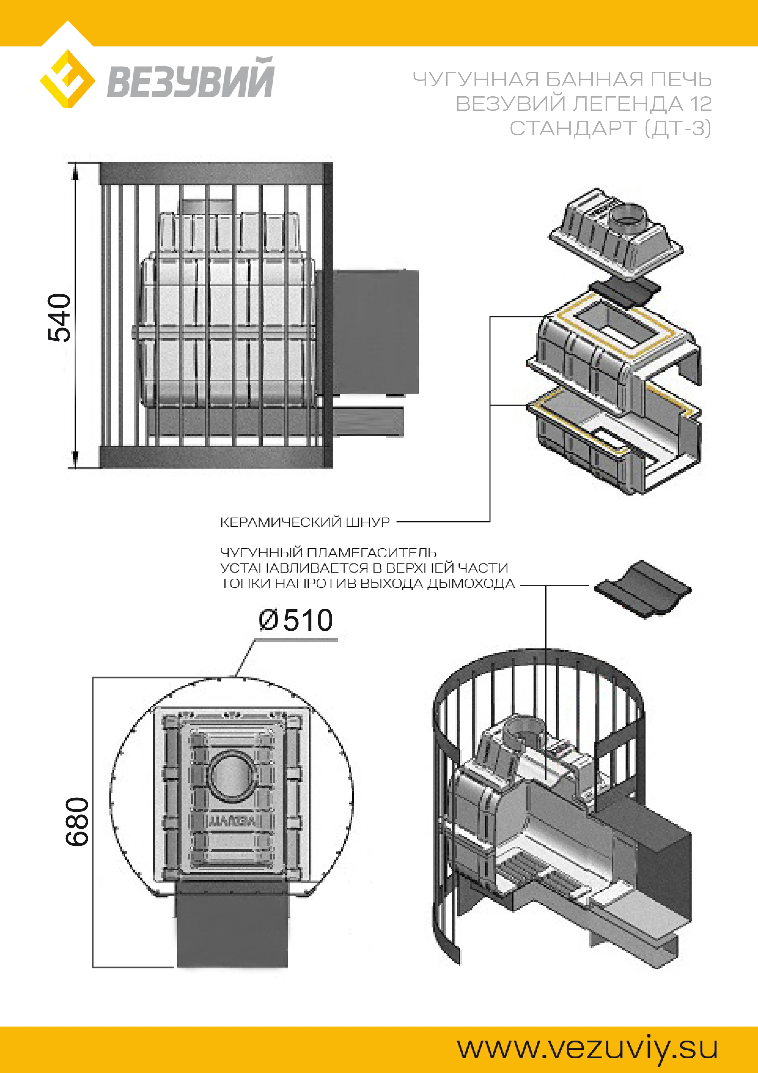 Банная чугунная печь Легенда Стандарт 12 (Дт-3) укомплектована чугунной дверцей Везувий Дт-3. Конвекционно-вентилируемый кожух "Стандарт" изготовлен из металлического прутка диаметром 6 мм покрашенной черной термостойкой краской.