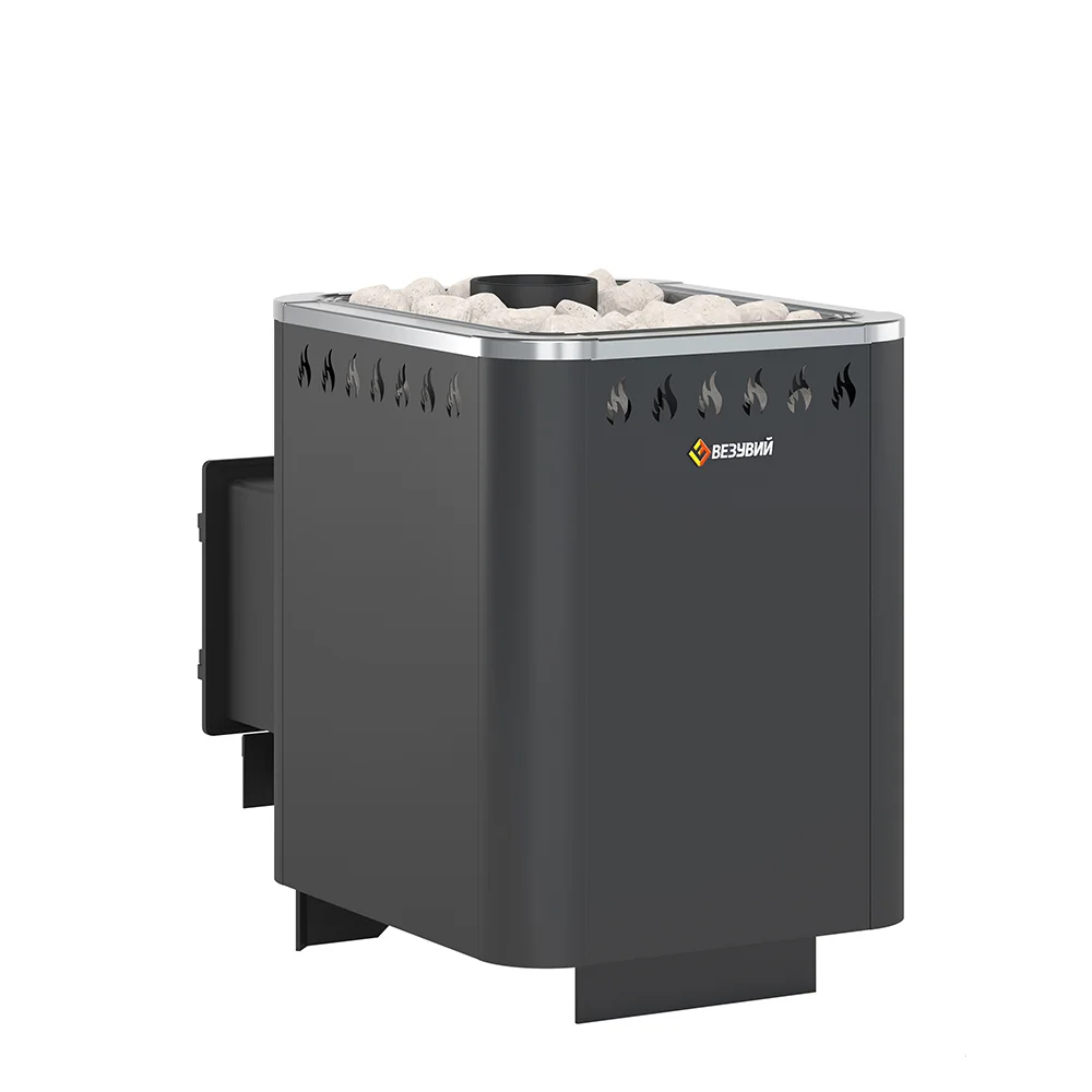 Конвекционная банная печь ВЕЗУВИЙ Русичъ Антрацит 12 (ДТ-3С) изготовлена из особо прочной котловой стали марки 09Г2С толщиной 4-6 мм и может устанавливаться в парную объёмом от 6 до 14 кубических метров.