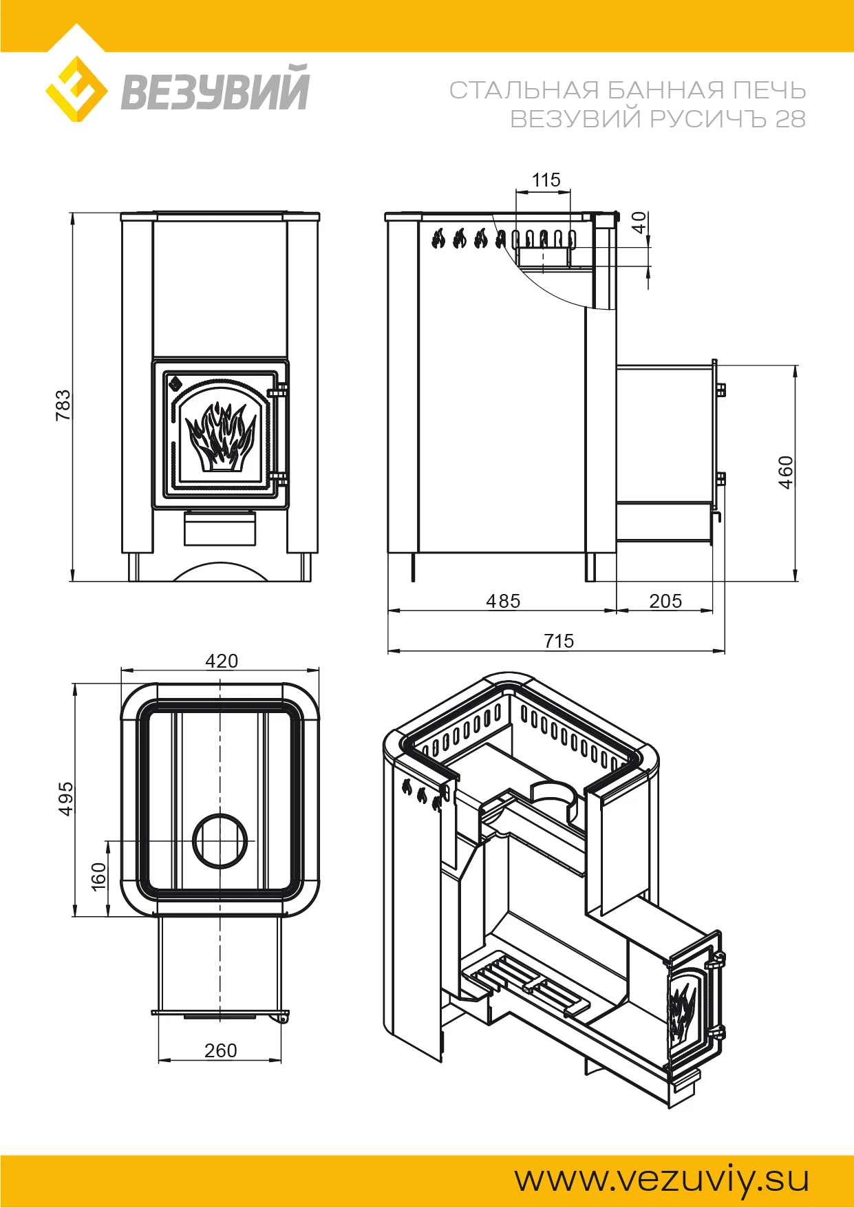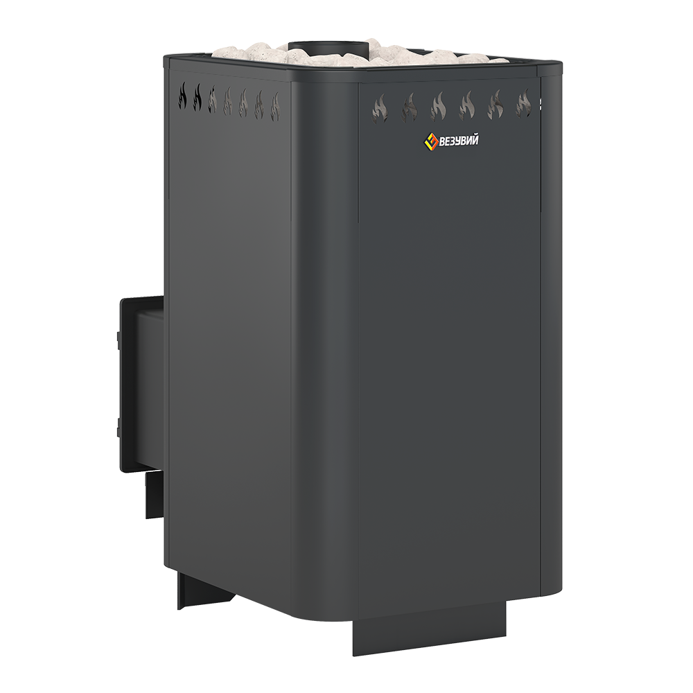 Конвекционная банная печь ВЕЗУВИЙ Русичъ Антрацит 28 (ДТ-4) изготовлена из особо прочной котловой стали марки 09Г2С толщиной 4-6 мм и может устанавливаться в парную объёмом от 14 до 30 кубических метров.