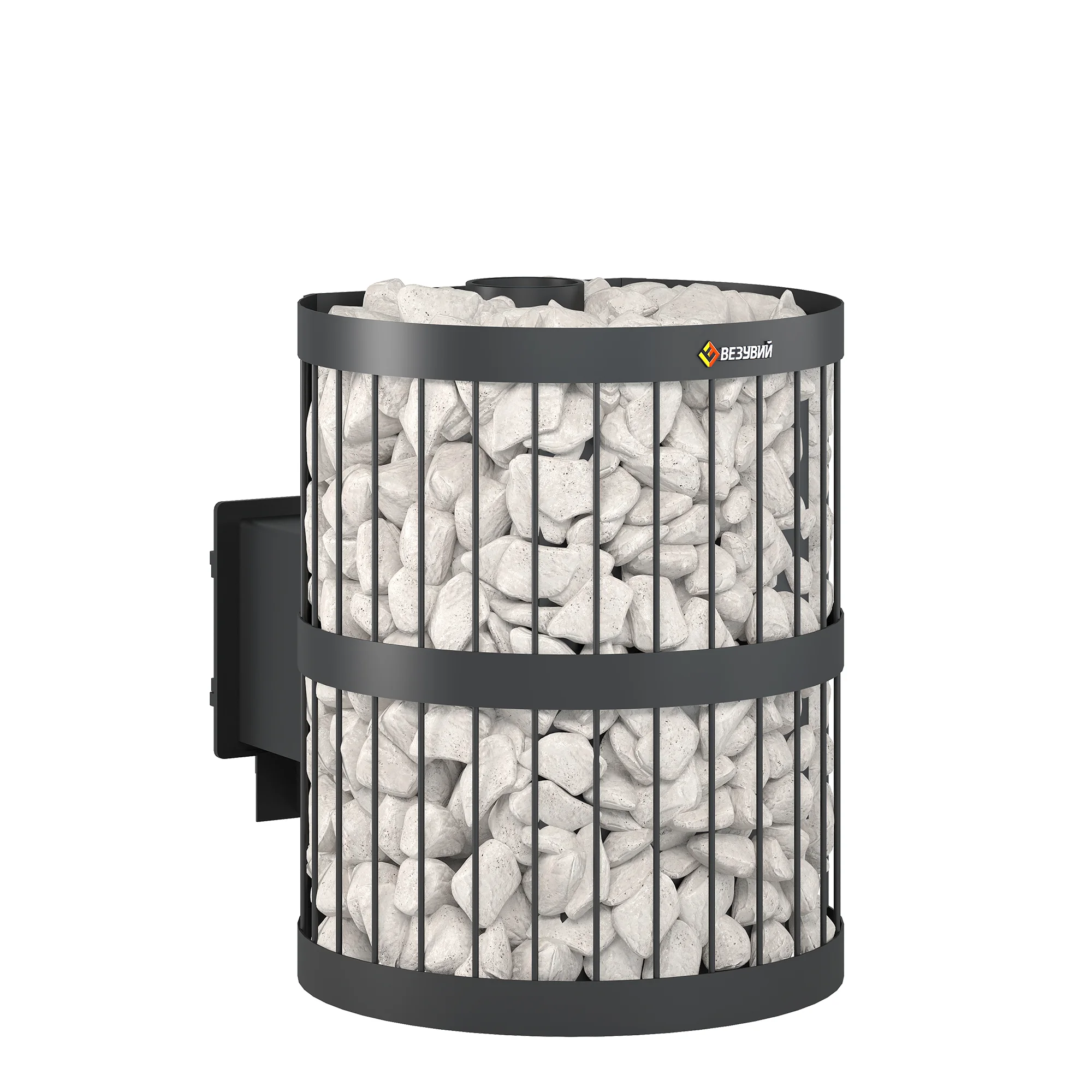 Воздух в зону горения подаётся через поддувало, его количество регулируется зольным ящиком совкового типа. Открытый зольник усиливает горение, закрытый – замедляет его. Чугунный пламегаситель перенаправляет поток горячего воздуха и дымовых газов к задней части топки. Это позволяет снять с печи максимум энергии в единицу времени. Чугунная дверь при нагревании не деформируется, сохраняет свою форму при остывании и предотвращает попадание продуктов горения на пол перед топкой. Печи Везувий СКИФ оснащаются сетками для камней. Сетки могут быть сделаны из металлического прутка или кованой стальной ленты шириной 40 мм. В сетки по всей высоте укладываются камни для бани, обеспечивая большой объём заклада и длительное удержание тепла после прогрева каменки.