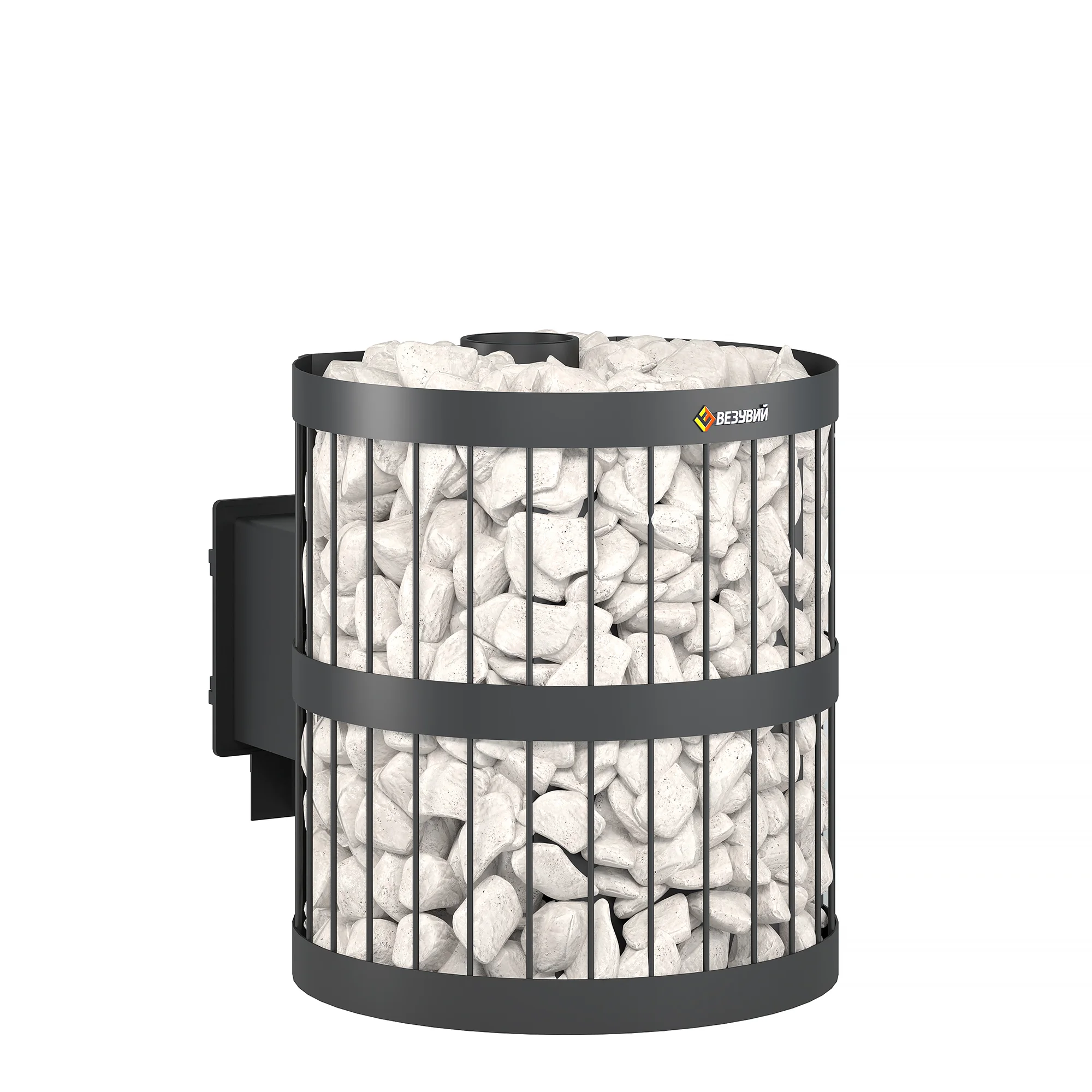 Воздух в зону горения подаётся через поддувало, его количество регулируется зольным ящиком совкового типа. Открытый зольник усиливает горение, закрытый – замедляет его. Чугунный пламегаситель перенаправляет поток горячего воздуха и дымовых газов к задней части топки. Это позволяет снять с печи максимум энергии в единицу времени. Чугунная дверь при нагревании не деформируется, сохраняет свою форму при остывании и предотвращает попадание продуктов горения на пол перед топкой. Печи Везувий СКИФ оснащаются сетками для камней. Сетки могут быть сделаны из металлического прутка или кованой стальной ленты шириной 40 мм. В сетки по всей высоте укладываются камни для бани, обеспечивая большой объём заклада и длительное удержание тепла после прогрева каменки.