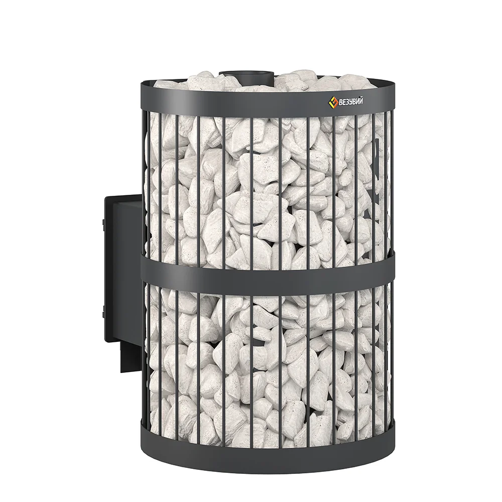 Воздух в зону горения подаётся через поддувало, его количество регулируется зольным ящиком совкового типа. Открытый зольник усиливает горение, закрытый – замедляет его. Чугунный пламегаситель перенаправляет поток горячего воздуха и дымовых газов к задней части топки. Это позволяет снять с печи максимум энергии в единицу времени. Чугунная дверь при нагревании не деформируется, сохраняет свою форму при остывании и предотвращает попадание продуктов горения на пол перед топкой. Печи Везувий СКИФ оснащаются сетками для камней. Сетки могут быть сделаны из металлического прутка или кованой стальной ленты шириной 40 мм. В сетки по всей высоте укладываются камни для бани, обеспечивая большой объём заклада и длительное удержание тепла после прогрева каменки.