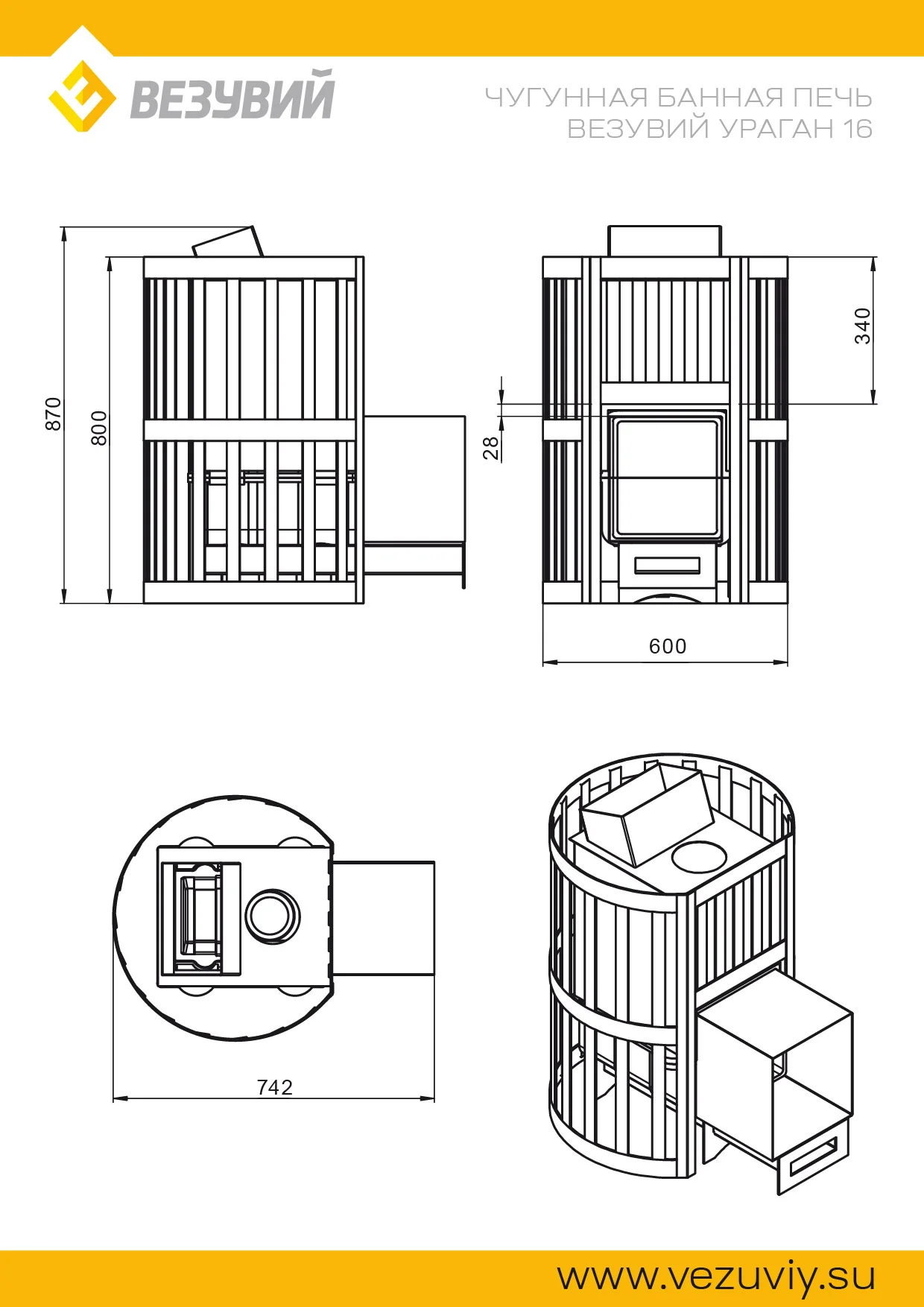Банная чугунная печь Ураган Ковка 16 (224) укомплектована чугунной герметичной дверцей Везувий 224 с жаропрочным стеклом «SCHOTT ROBAX». Закрытая каменка изготовлена из стали и вмещает в себя не менее 60кг камней. Конвекционно-вентилируемый кожух "Ковка" изготовлен из металлической текстурированной полосы покрашенной термостойкой краской и покрытая патиной «Бронза».