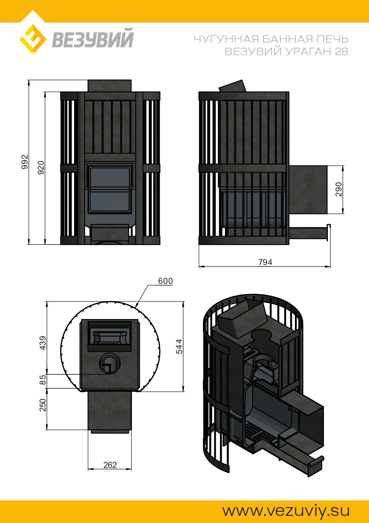 Банная чугунная печь Ураган Ковка 28 (270) укомплектована чугунной герметичной дверцей Везувий 270. Закрытая каменка изготовлена из стали и вмещает в себя не менее 60кг камней. Конвекционно-вентилируемый кожух "Ковка" изготовлен из металлической текстурированной полосы покрашенной термостойкой краской и покрытая патиной «Бронза».