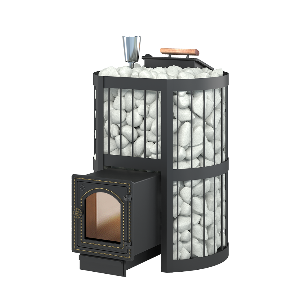 Банная чугунная печь Ураган Стандарт 16 (ДТ-4С) укомплектована чугунной не герметичной дверцей Везувий ДТ-4С с жаропрочным стеклом «SHOT ROBAX». Закрытая каменка изготовлена из стали и вмещает в себя не менее 60кг камней Конвекционно-вентилируемый кожух "Стандарт" изготовлен из металлического прутка диаметром 6мм покрашенной черной термостойкой краской.В конструкции данной печи предусмотрен топочный тоннель, при помощи которого печь топится из соседнего помещения, смежного с парильным.