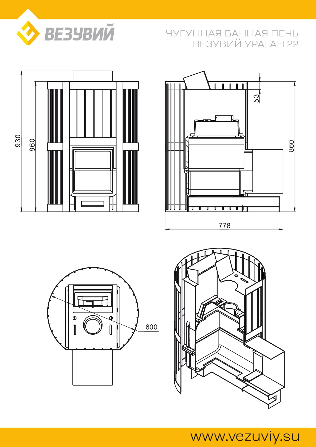 Банная чугунная печь Ураган Стандарт 22 (ДТ-4С) укомплектована чугунной не герметичной дверцей Везувий ДТ-4С с жаропрочным стеклом «SCHOTT ROBAX». Закрытая каменка изготовлена из стали и вмещает в себя не менее 60кг камней Конвекционно-вентилируемый кожух "Стандарт" изготовлен из металлического прутка диаметром 6мм покрашенной черной термостойкой краской.