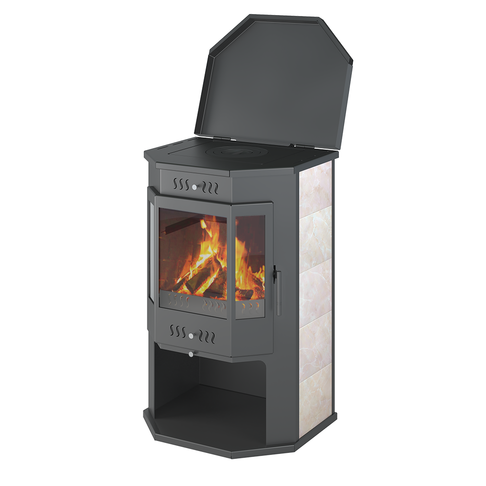 Топка в горизонтальной проекции имеет форму призмы, что позволяет размещать дрова как вдоль, так и поперёк топочного пространства. Длина используемых дров – до 45 см.