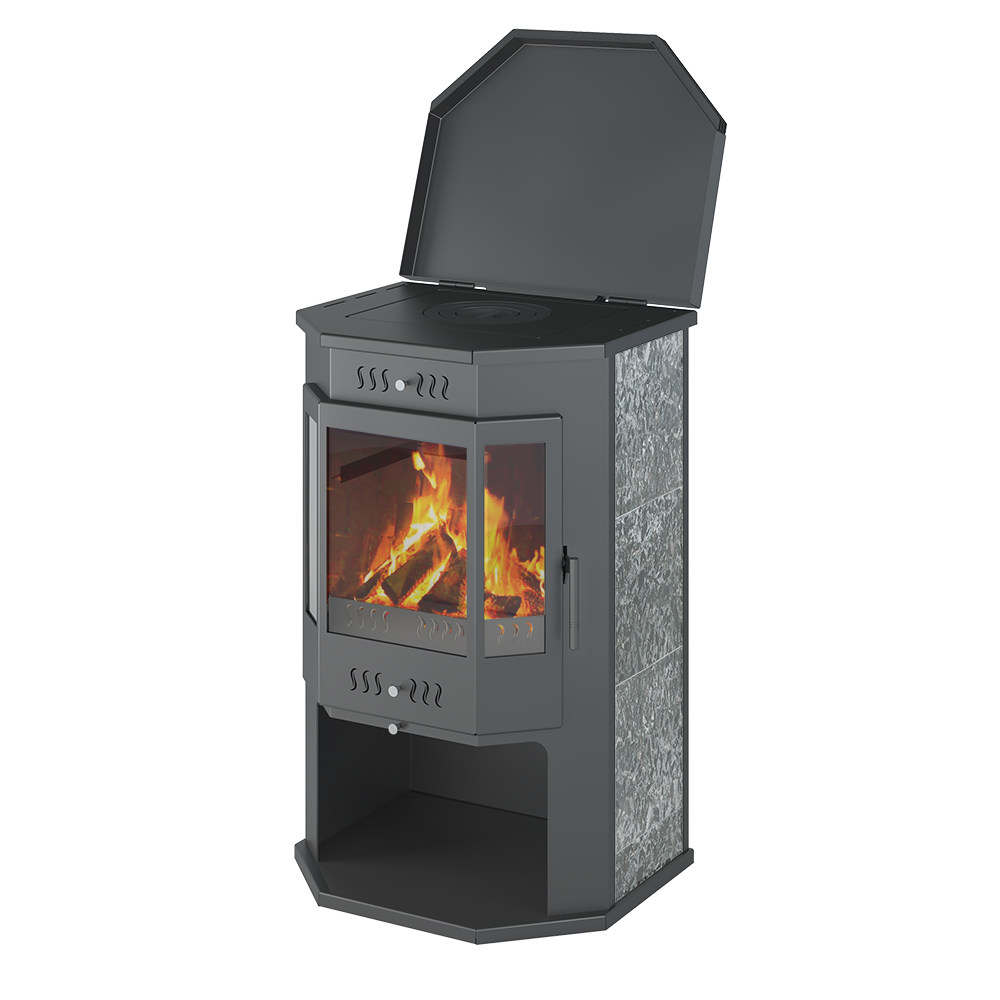 Топка в горизонтальной проекции имеет форму призмы, что позволяет размещать дрова как вдоль, так и поперёк топочного пространства. Длина используемых дров – до 45 см.