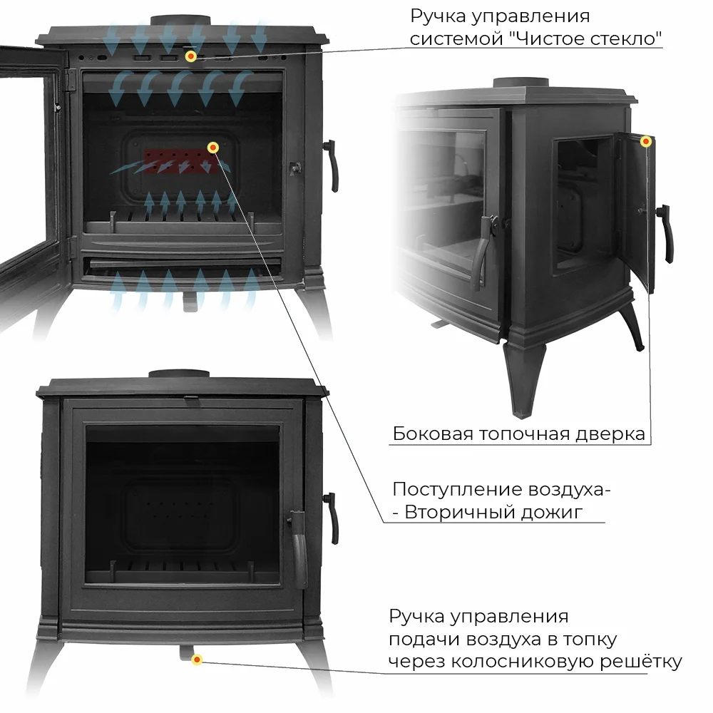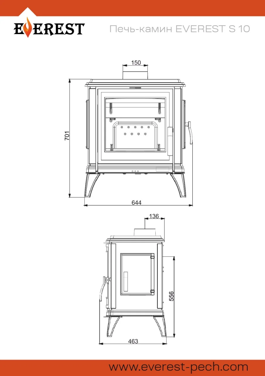 Печь-камин Эверест имеет классический стиль, она подойдет и украсит любой интерьер. Печь отлита из чугуна высокого качества, не требует дополнительного фундамента для нее . Имеет удобную дверь для закладки дров , хороший обзор на пламя через стекло. Подача воздуха в топочную камеру осуществляется с помощью заслонки, что позволяет регулировать режим горения. Также имеется двойной дожиг повышающий КПД печи, и минимизирующий остатки продуктов горения.