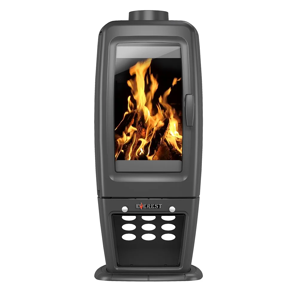 Печь-камин EVEREST S12 изготовлена из качественного жаростойкого чугуна с толщиной стенок 6-8мм. Вес печи составляет 182 кг. Модель рассчитана на обогрев помещений объёмом до 240м³.