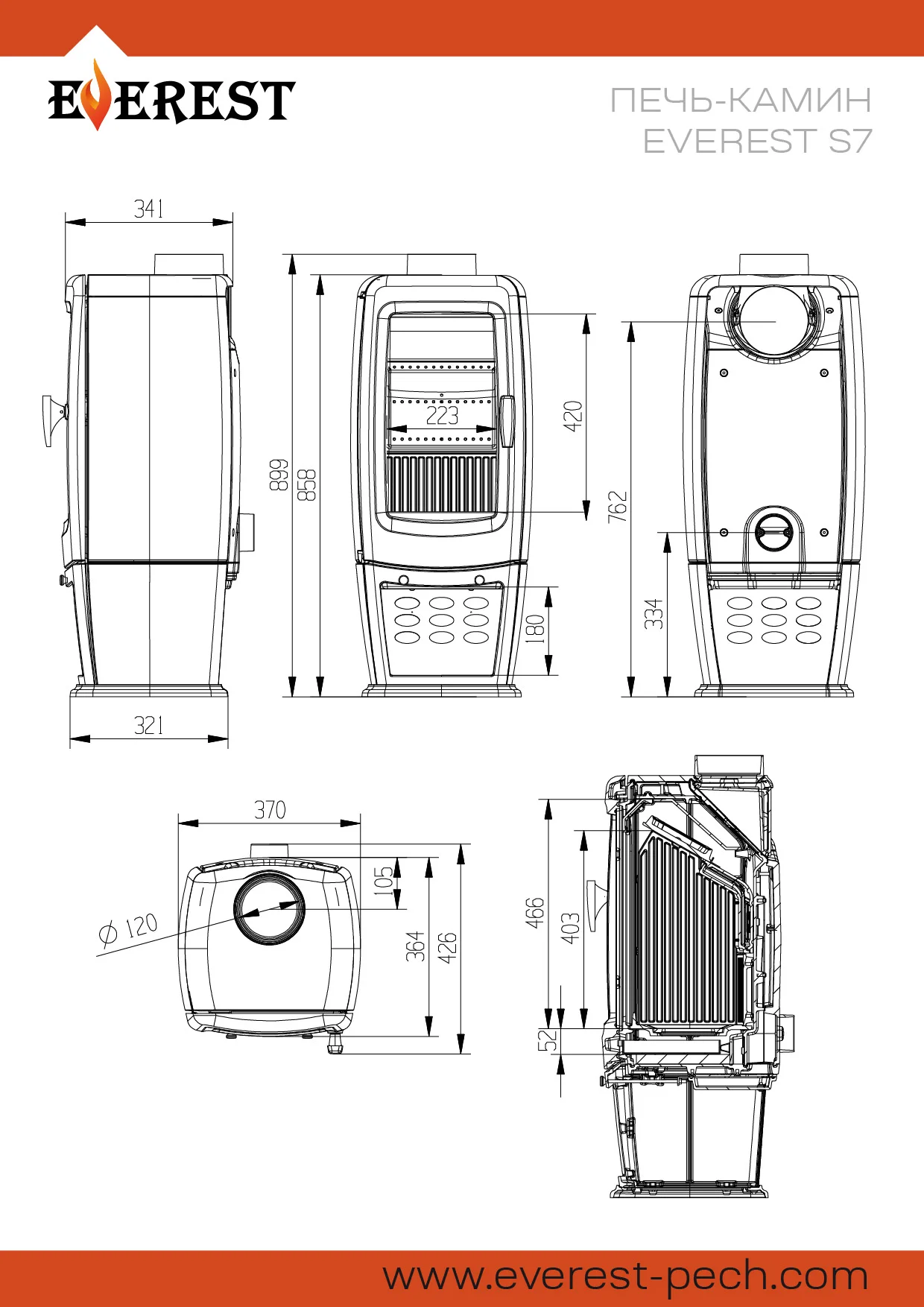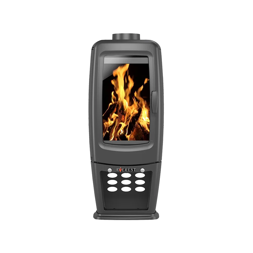 Печь-камин EVEREST S7 изготовлена из качественного жаростойкого чугуна с толщиной стенок 6-8мм. Вес печи составляет 120 кг. Модель рассчитана на обогрев помещений объёмом до 140м³.
