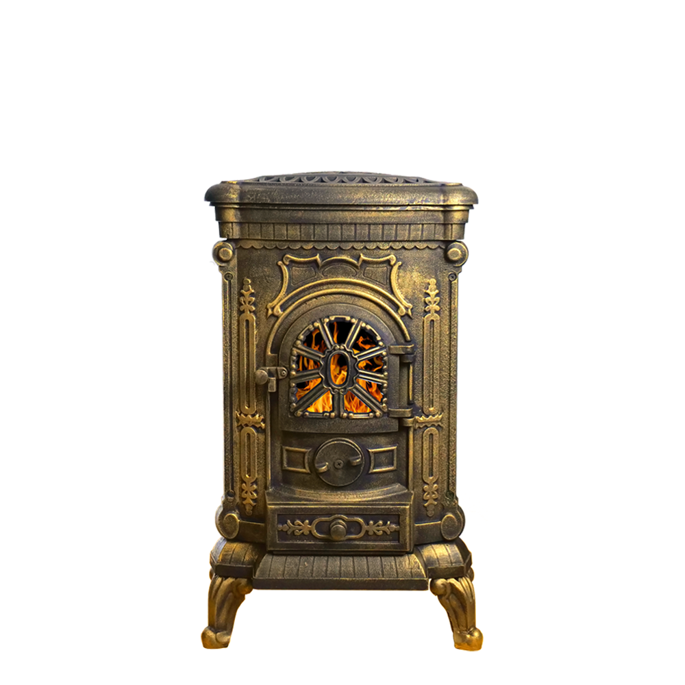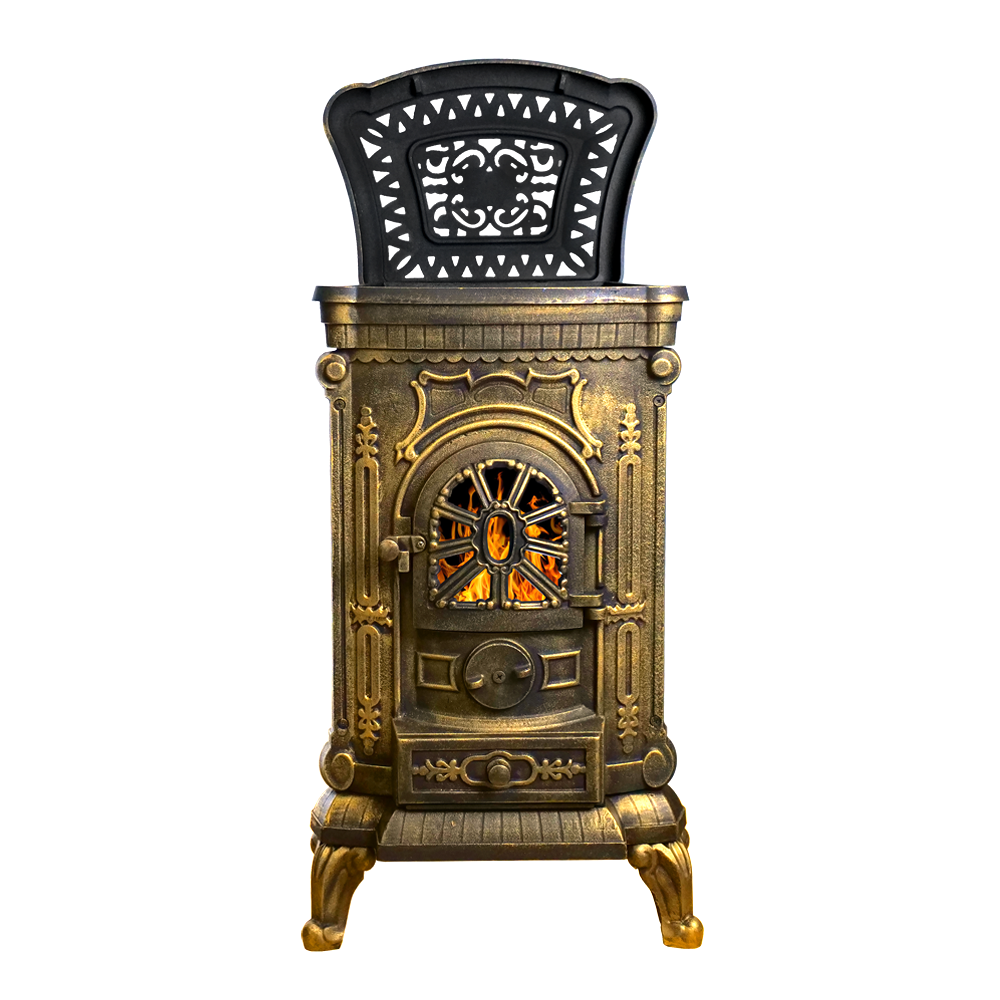 Отопительная печь Везувий А-07 сделана из качественного чугуна. Все элементы собираются между собой на термостойкий герметик и болтовые соединения. Толщина чугуна – 6 мм.Пространство топки со всех сторон ограничено чугунными стенками.Верхняя панель толщиной 6 мм оснащена варочной конфоркой диаметром 23 см. Конфорка – съёмная, и при приготовлении пищи может быть убрана для размещения металлической посуды без ровного дна (например, небольшого казана). При снятой конфорке нагрев посуды проходит быстрее, что ускоряет приготовление еды.Небольшой бортик по периметру верхней панели предотвращает попадание пролившихся жидкостей на боковые стенки печи.В то время, когда вы не пользуетесь конфоркой, верхняя панель печи прикрывается литой узорной крышкой из чугуна.Чугунный пламегаситель – съёмный, устанавливается на небольшие отливы, выступающие в пространство топки в её верхней части. Форма и размер пламегасителя рассчитаны на максимальное удлинение пути пламени. Работа этого элемента топки направлена на повышение эффективности сгорания топлива и дымовых газов.Сама колосниковая плита одновременно выполняет роль нижней стенки топочной камеры. В ней прорезаны колосниковые щели, через которые первичный воздух для горения поступает в топку.Объём подаваемого воздуха регулируется за счёт вращения округлой рукоятки на передней поверхности печи. Рукоятка в закрытом виде закрывает отверстия для подачи воздуха на горение. Выкручивая рукоятку, мы увеличиваем поступление воздуха в топочную камеру и усиливаем горение дров.Топка глубиной 25 см рассчитана на небольшие дрова или брикеты. В положении стоя в топку войдут дрова длиной до 30 см.Коробчатый зольный ящик размещается ниже двери печи. Он сделан из стали, а передняя стенка – чугунная, выполнена в дизайне, схожем с общим дизайном печи А-07. Ящик полностью заполняет поддувальное пространство, обеспечивая чистоту и порядок. С помощью ящика быстро и удобно удалять из печи золу и несгоревшие угли.Дверь печи А-07 – чугунная, с термостойким стеклом диагональю 19 см. Стекло спереди защищено фигурной литьевой решёткой, которая придаёт двери внешний вид, схожий с витражом.Конструкция дверного запора простая, но при полном закрытии он обеспечивает притягивание полотна двери к рамке. В сочетании с керамическим шнуром по периметру двери ручка помогает добиться максимальной газоплотности топочного пространства.Патрубок дымохода диаметром 115 мм размещается на задней стенке печи. Такое размещение точки выхода дымовых газов совместно с работой пламегасителя позволяет максимально эффективно получать энергию горящих дров и обеспечивает высокий КПД печи.Небольшая масса печи в 79 кг позволяет устанавливать её без дополнительного подкрепления полов.Изящный дизайн с фигурной отделкой удачно впишется в интерьер с самыми разными стилями.
